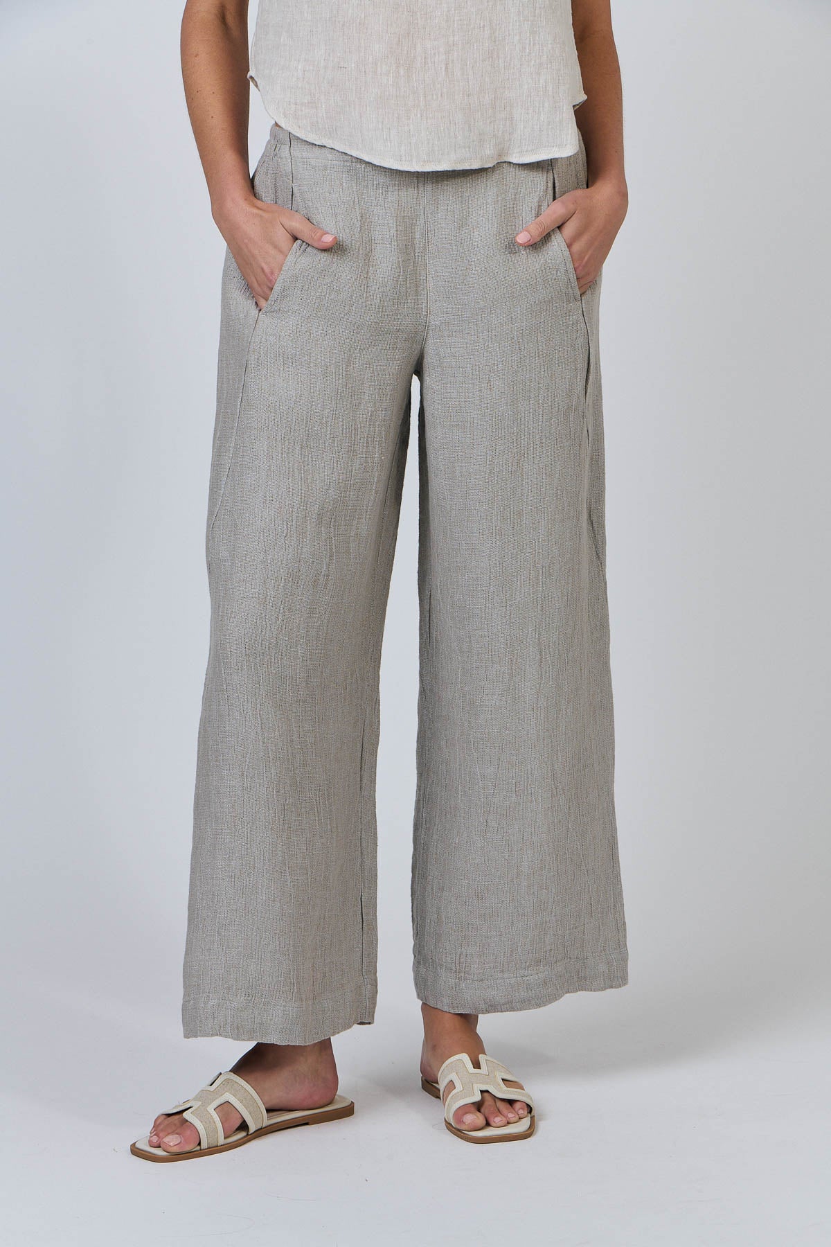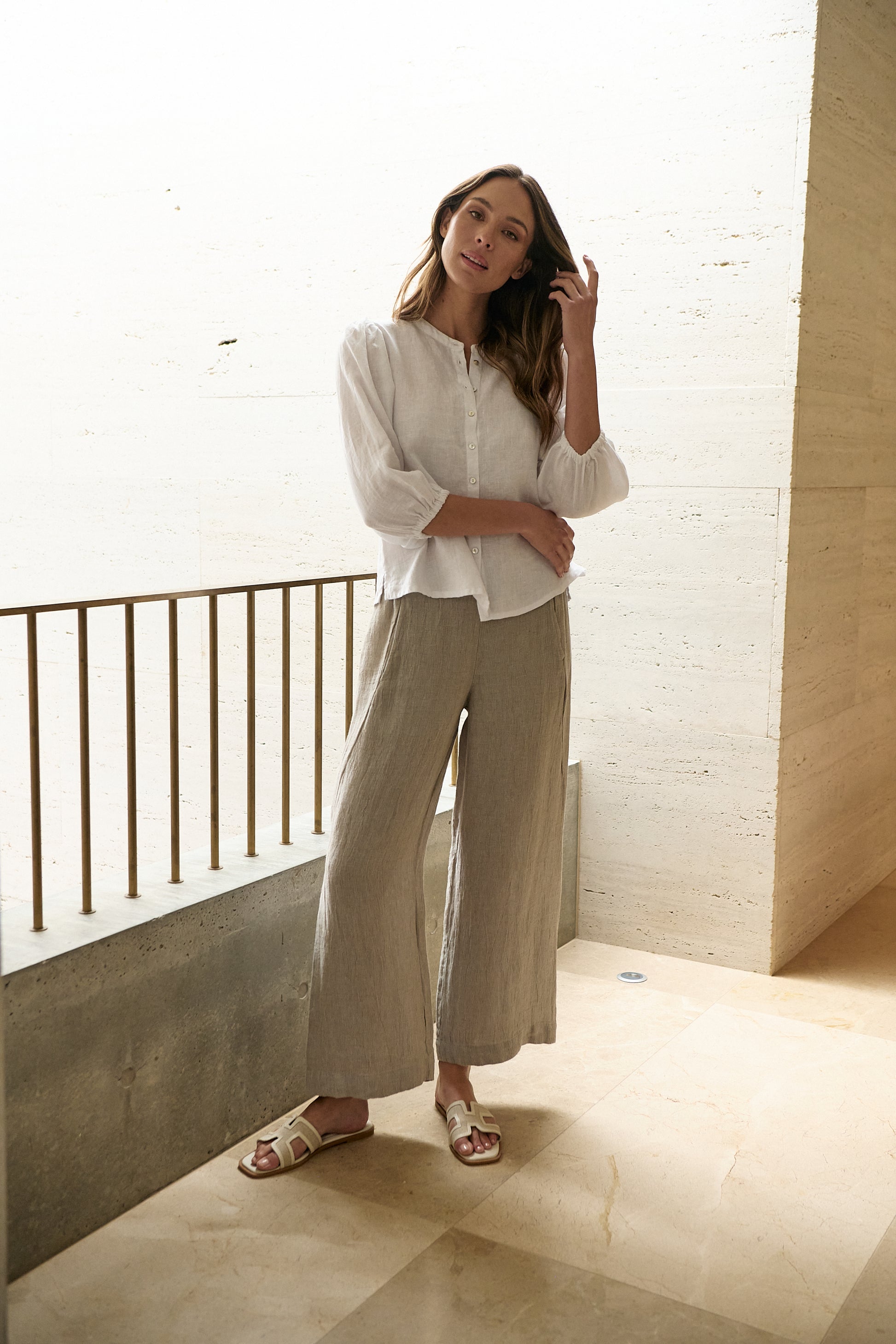 GA398 is a full - length, wide - leg pant featuring two front pockets. Made from 100% breathable linen, this is a tailored look that pairs with just about anything, from a cosy sweater to a loose - fitting shirt. Gathered detailing at the back waistband offers an ultra - flattering design.