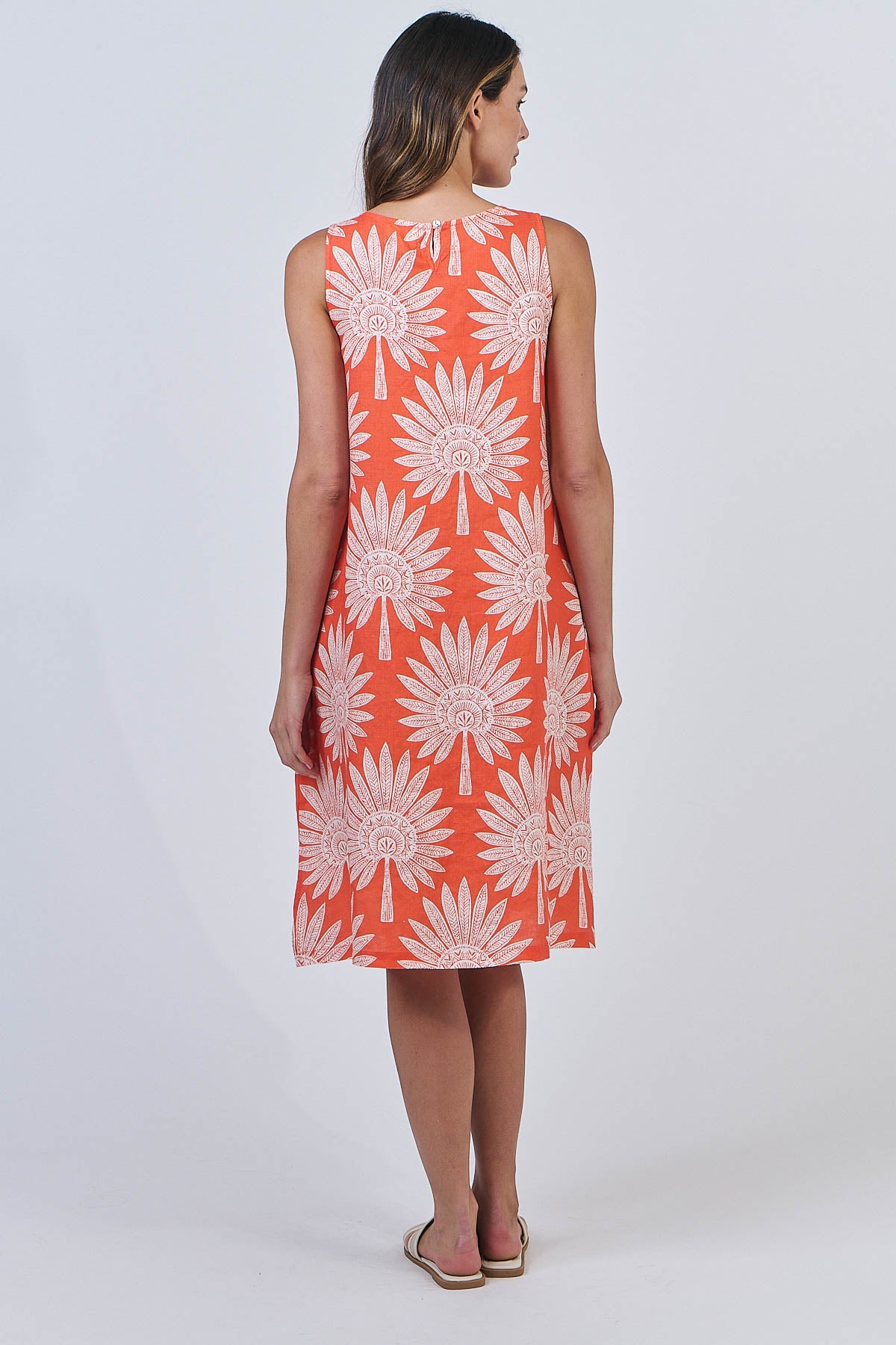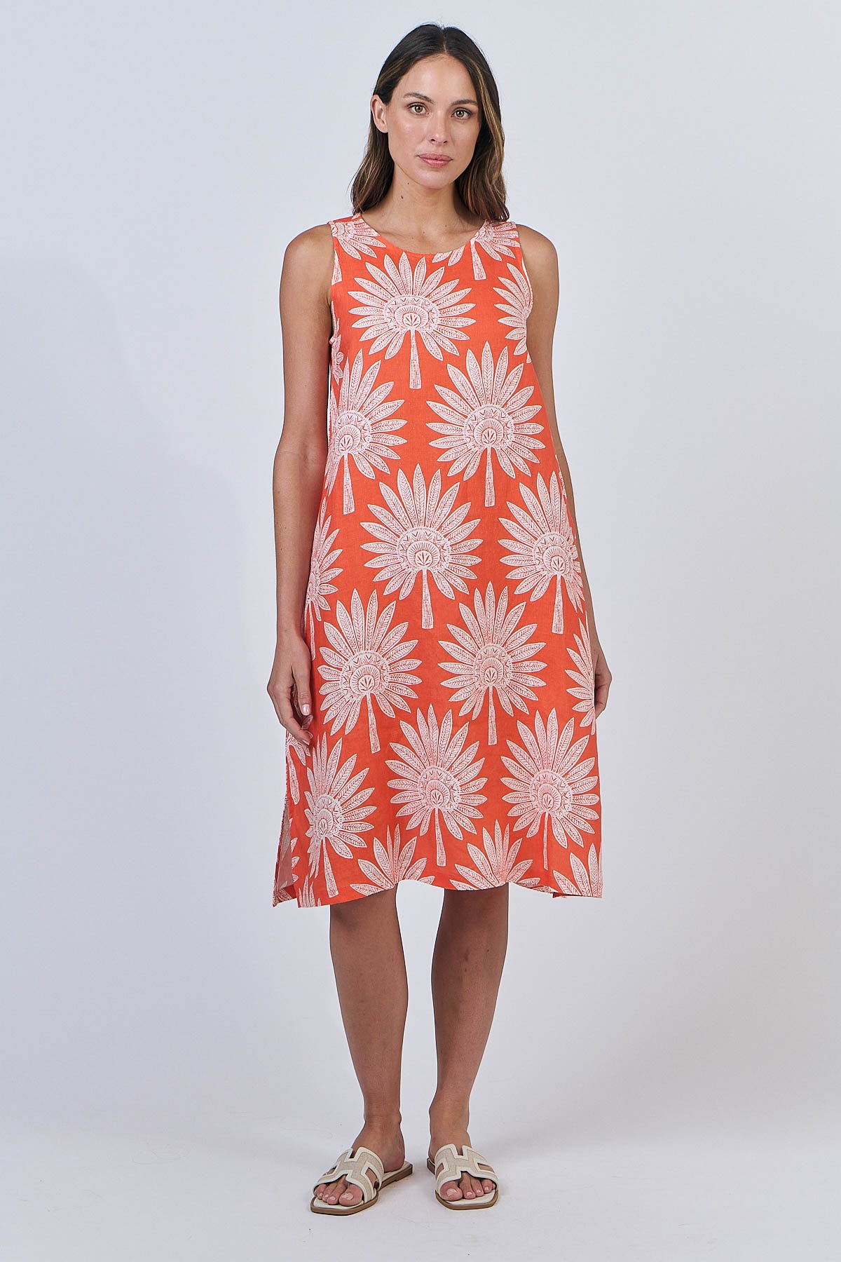 Wear the season in full bloom with this light - as - air printed dress. Crafted from 100% linen, GA626 features a relaxed A - line silhouette with a round neckline and sleeveless design, perfect for effortless elegance on warmer days. The practical side pockets add functionality to this sophisticated piece, which transitions seamlessly from day to evening with its knee - length hemline and subtle side slits.