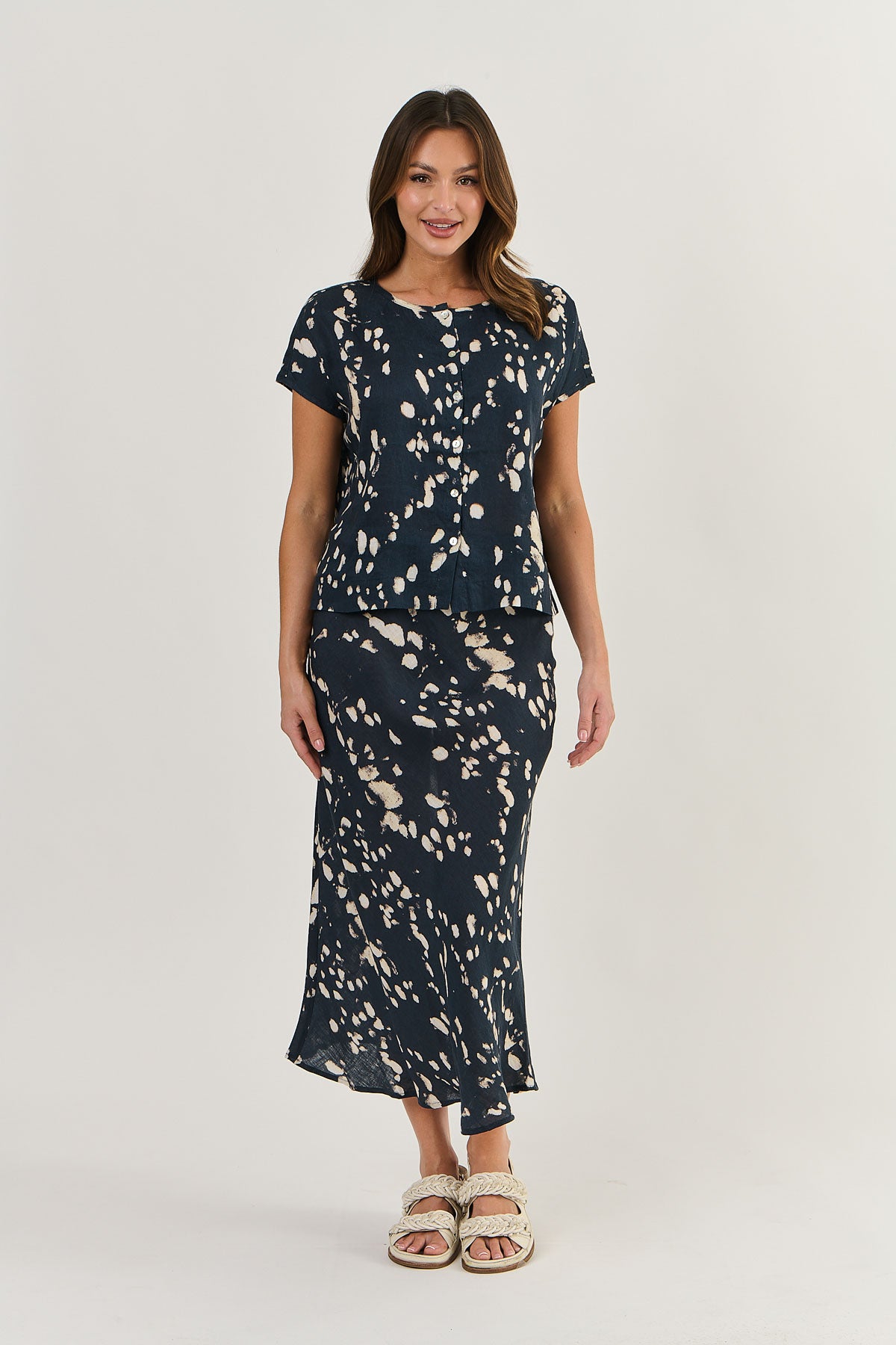 Naturals Linen Button Through Top GA504UV - Universe