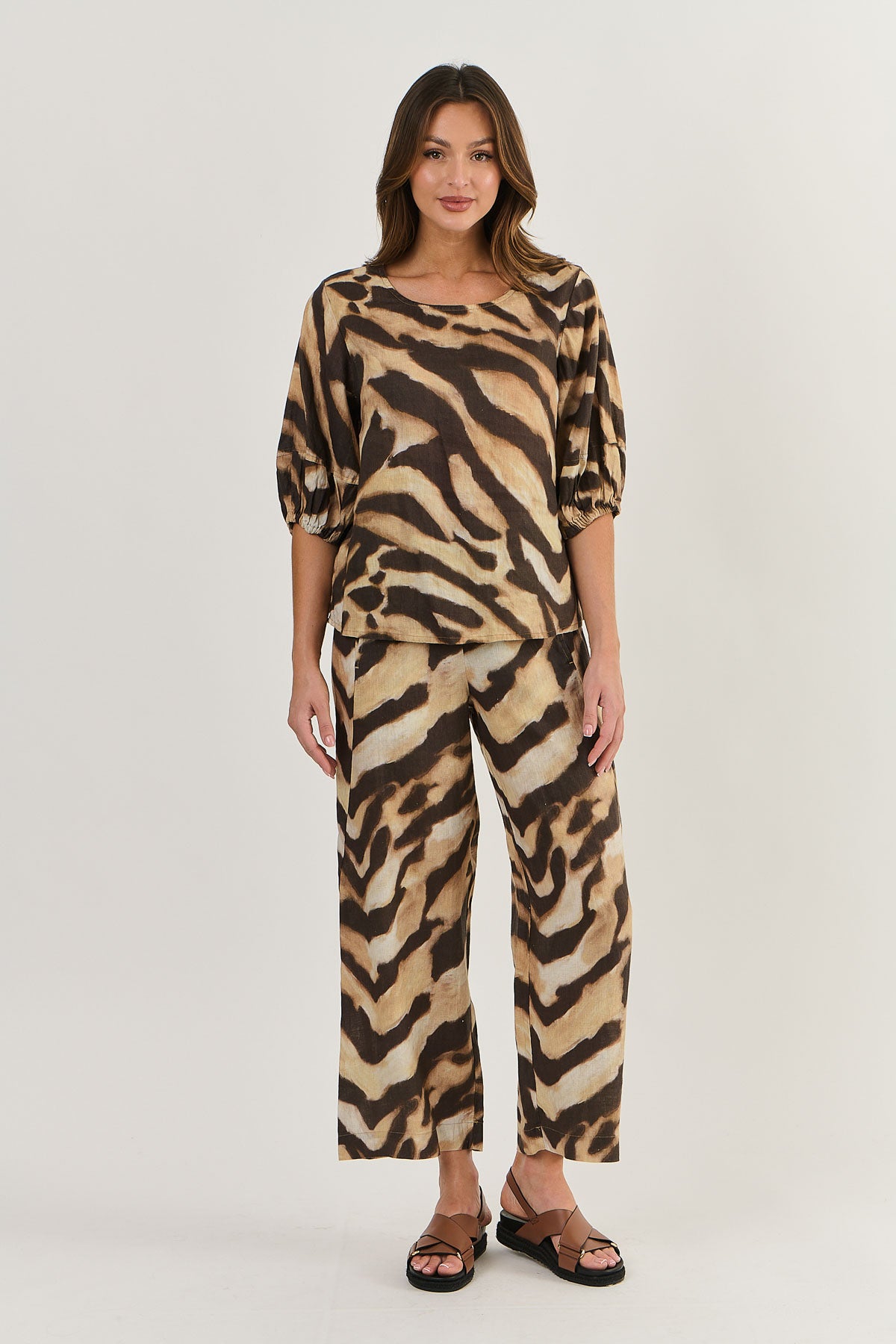 Naturals Linen Round Neck Top GA473WC - Wildcat