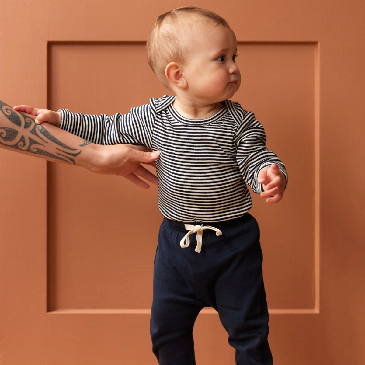 As babies spend most of their first weeks and months drifting in and out of sleep, they need comfortable clothes. These pants have soft elastic around the waist and a drawstring to ensure the perfect fit. Featuring a cuffed tapered leg that can be folded up or down. One of our most popular styles for every day wear, baby will be cosy and snug. To minimise shrinkage, this fabric has been pre-washed.