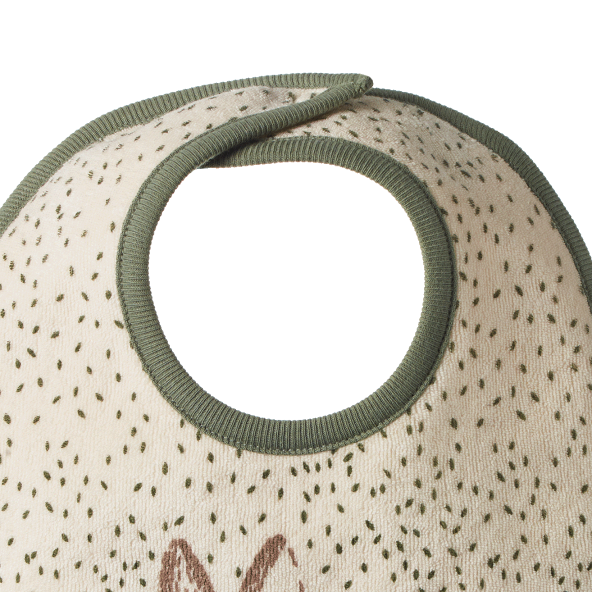 You can never have too many bibs! Made from double layered certified organic terry towelling, this bib is reversible with a print on the front, and a print or solid colour on the back. It also has ample covering of baby's front and shoulders with easy snap fasteners at the back neck for easy attachment. Made from certified organic terry towelling cotton, which is thick and super absorbent. To minimise shrinkage, this fabric has been pre-washed.