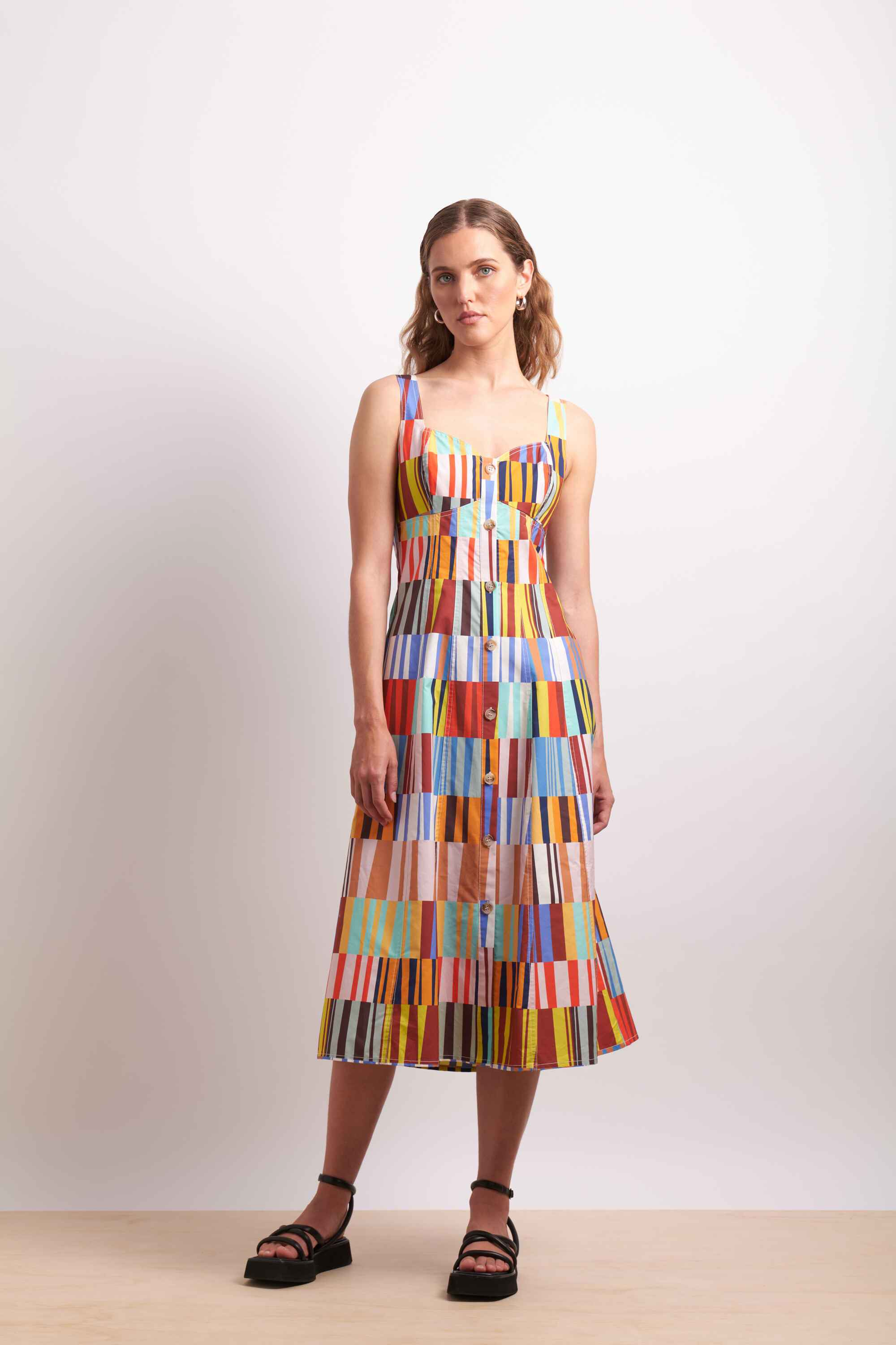 Tailored through the bust with shirred back for ease and flaring into a classic A-line skirt, the As It Seams Dress is made from breathable light and crisp 100% cotton poplin. With wide straps, pockets, and a button-down front, this panelled midi dress with contrasting top stitch, offers a timeless silhouette with modern ease. Designed in Christchurch, New Zealand.
