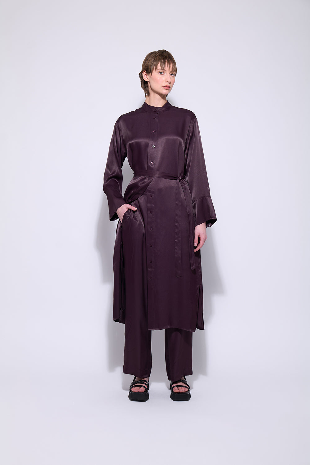 The Sloane Dress by Neris, is an elegant mid-length dress made from a soft viscose fabric with a silk-like feel. Featuring a button-up front, tie waist, cuffed sleeves, and a side split for ease of movement, this dress is perfect for day-to-night transitions. Designed in Christchurch, New Zealand.