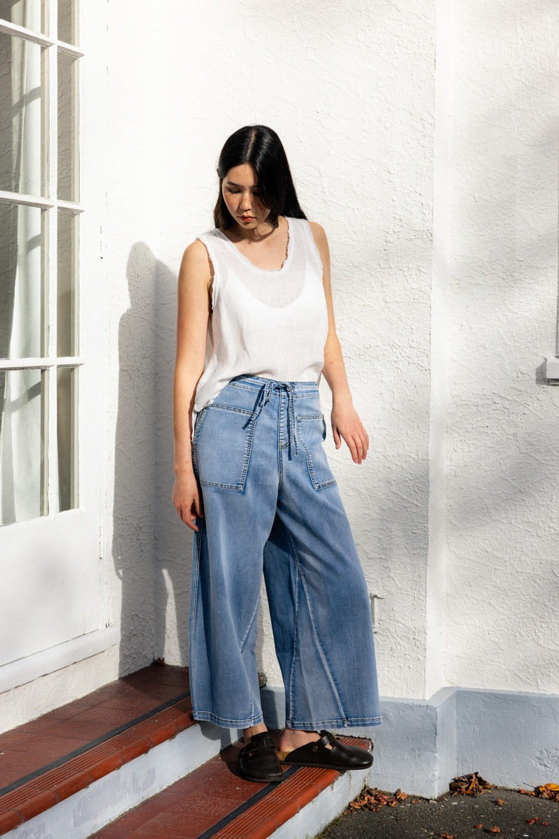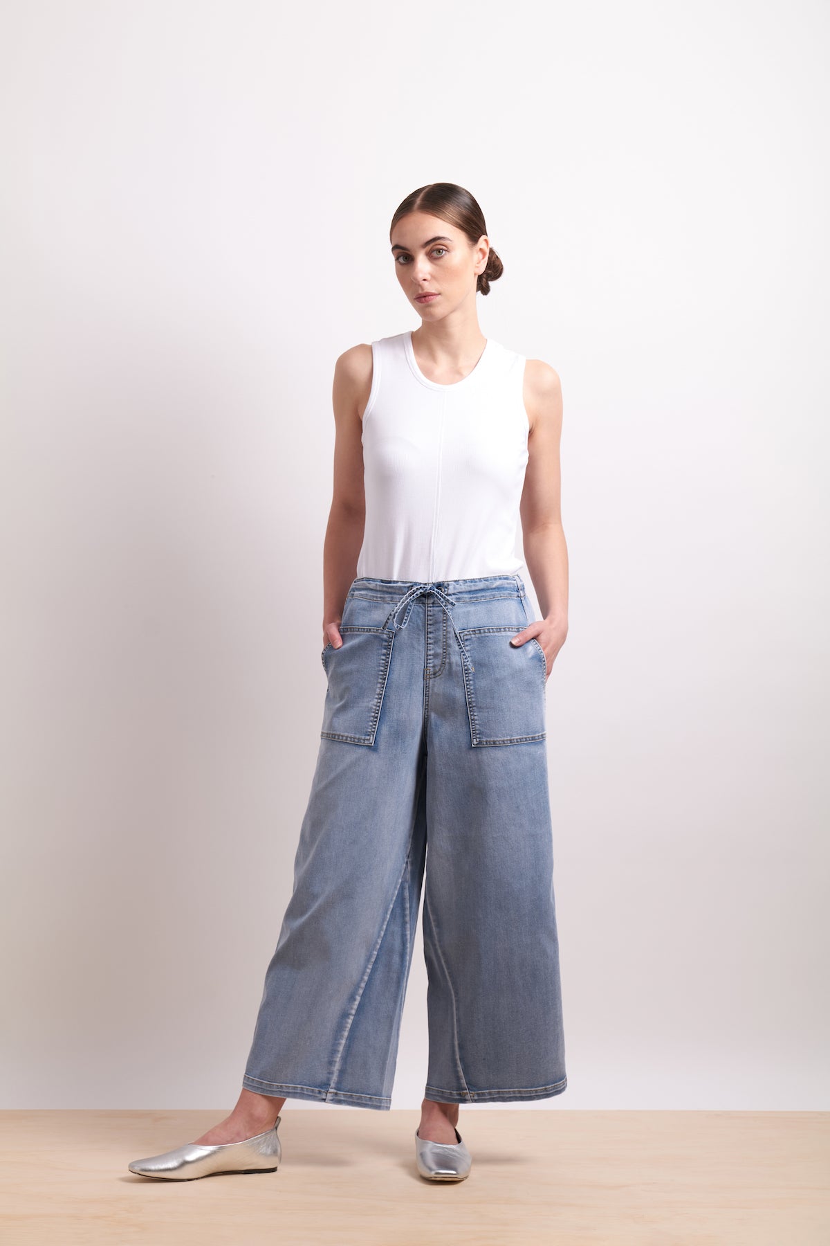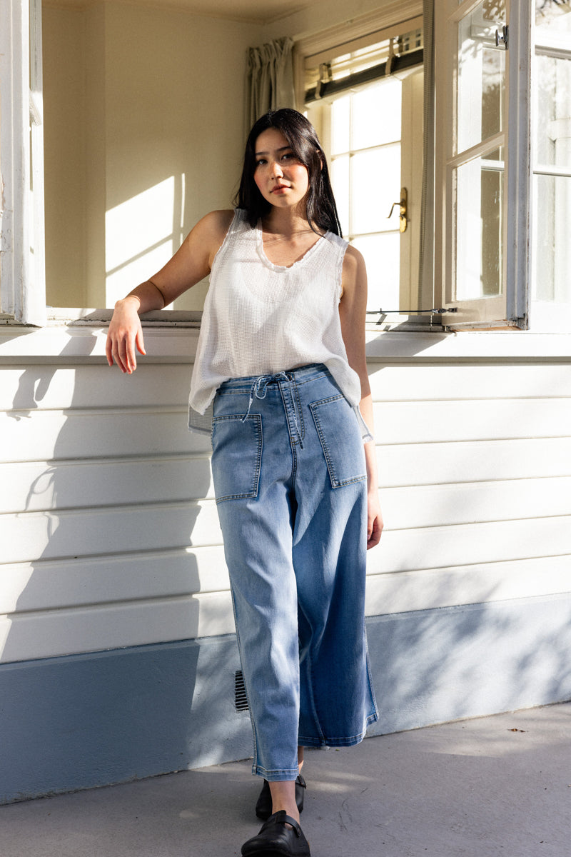 Designed with movement in mind, The Nomad Jean features an ultra-wide leg with inner-leg panelling that adds a barrel leg appearance. It has an elasticated back and tie front on the waist and the oversized front pockets lend a utilitarian edge, making these a statement style with a laid-back attitude. Designed in Christchurch, New Zealand.