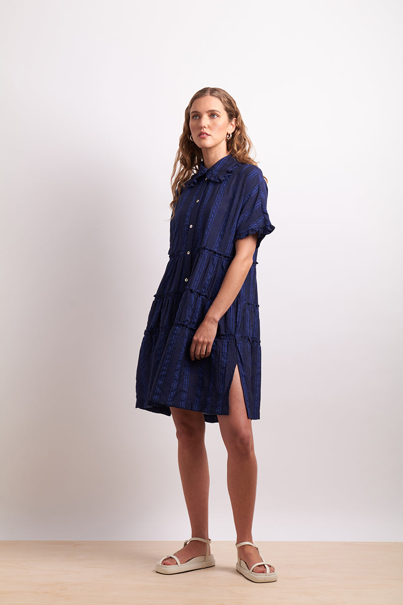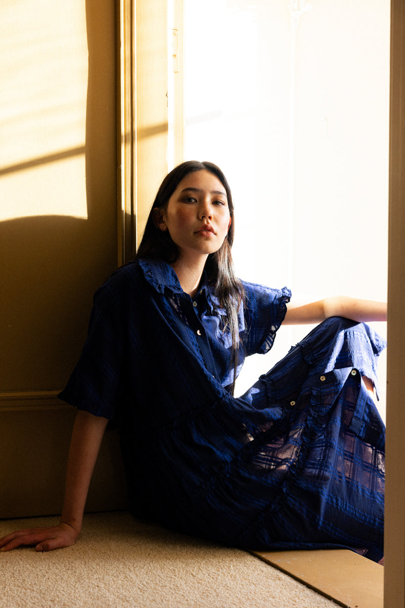 A charming silhouette with vintage appeal, The Ruffles Dress is crafted from a soft check fabric and cut in a relaxed, tiered knee-length shape. Featuring a ruffled collar, elbow-length ruffle sleeves, and practical front pockets, this button-down style brings effortless whimsy to everyday dressing. Designed in Christchurch, New Zealand.