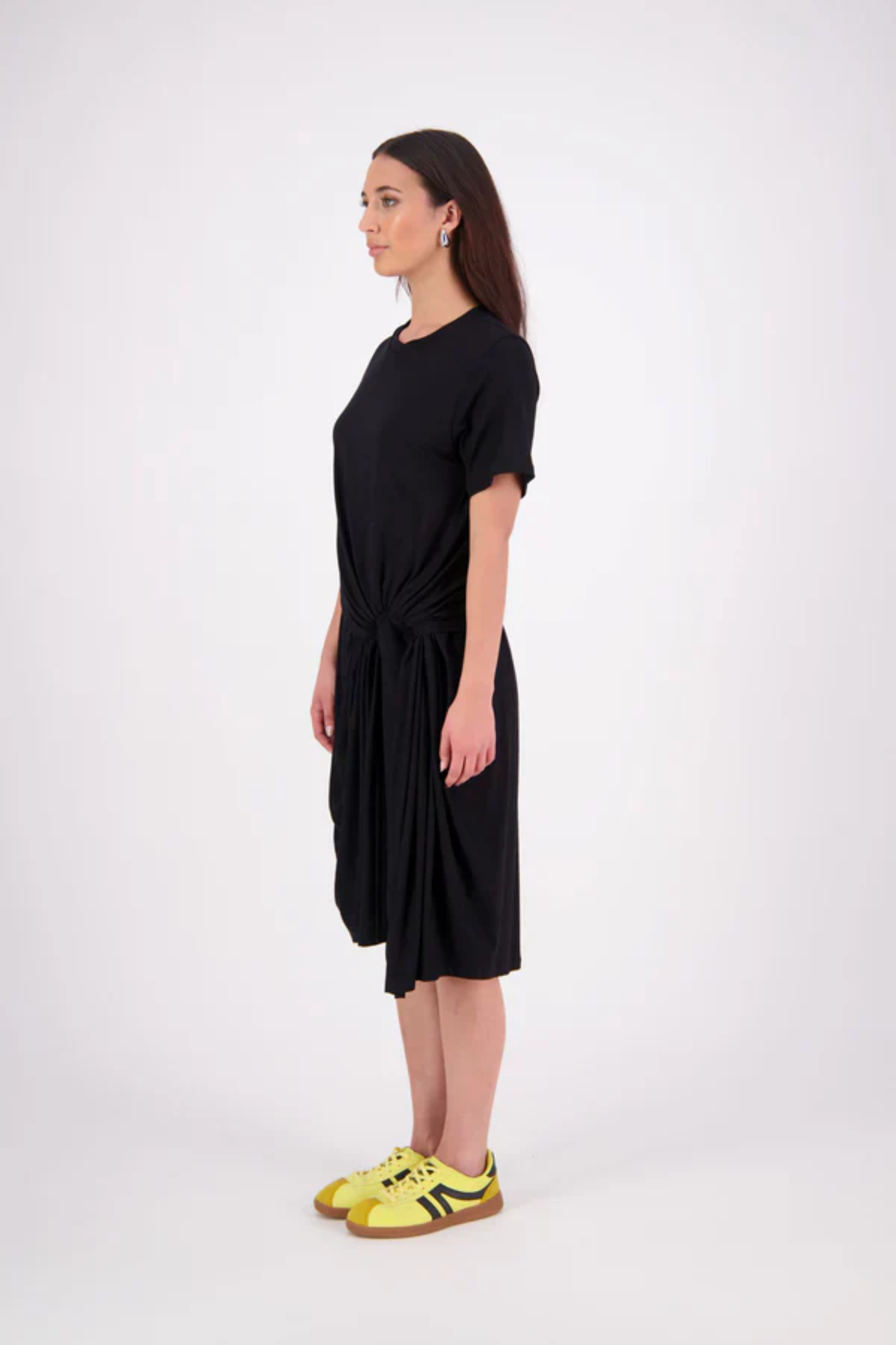 An easy-wear summer staple, the N-E-S Ava Knit Dress features a twist pull-through front detail creating a soft, half-moon shape and a subtle asymmetric hem. Designed in a breathable knit with short sleeves and a flattering knee-length cut, it’s the effortless throw-on dress you'll reach for time and time again. Just add slides or sneakers.