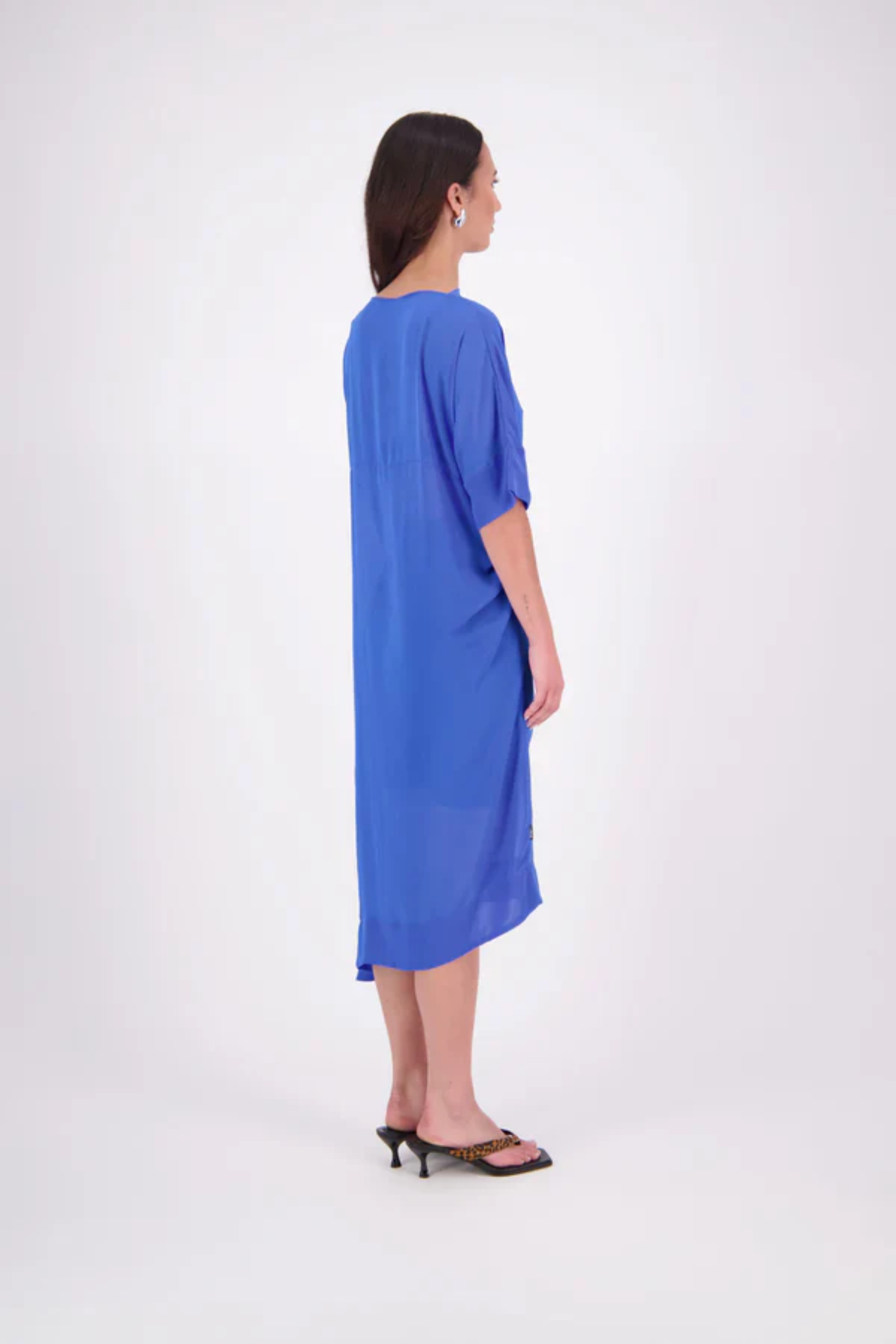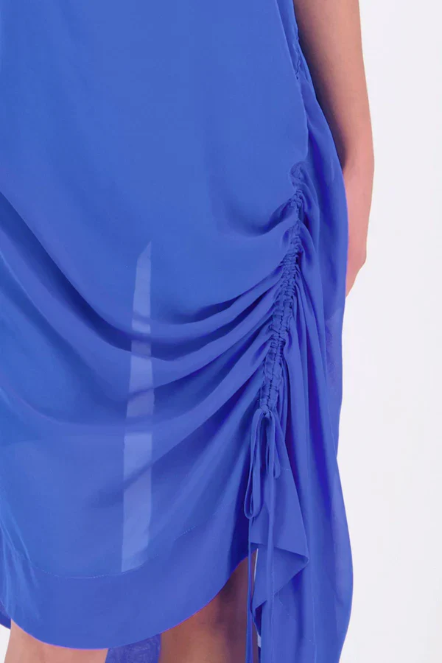 The N-E-S Em Dress is a statement style crafted in lightweight chiffon, designed with rouching and a drawcord that lets you adjust the length to suit your look. Featuring a cap sleeve on the left and a cuffed short sleeve on the right, it embraces asymmetry with a wide cuff hem for added edge. Floaty yet bold, the Em Dress is your go-to for elevated, directional dressing.