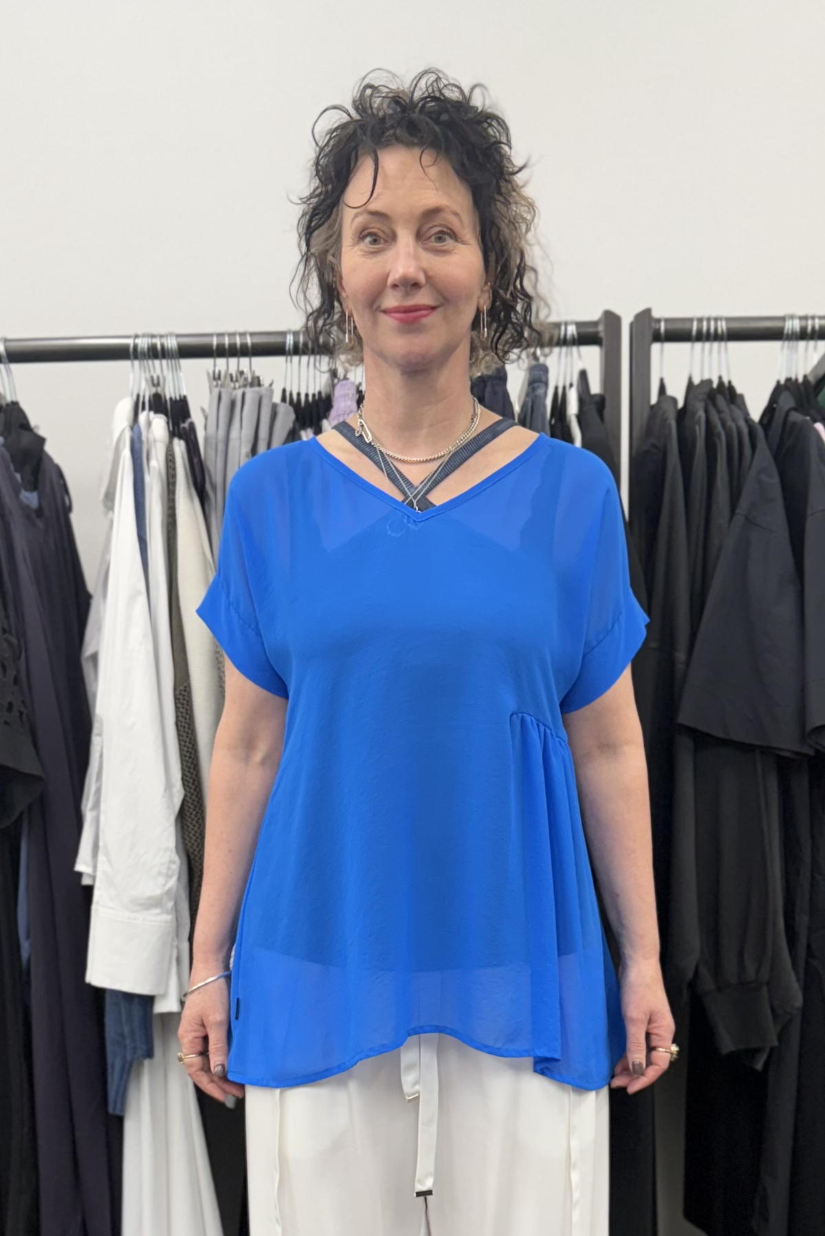 A feminine essential with effortless drape. Featuring a flattering V-neckline, cap sleeves, and soft ruching under the bust, the Kira Top finishes just below the waistband—perfect with high-waisted pants or skirts. A versatile piece for relaxed elegance, day or night.