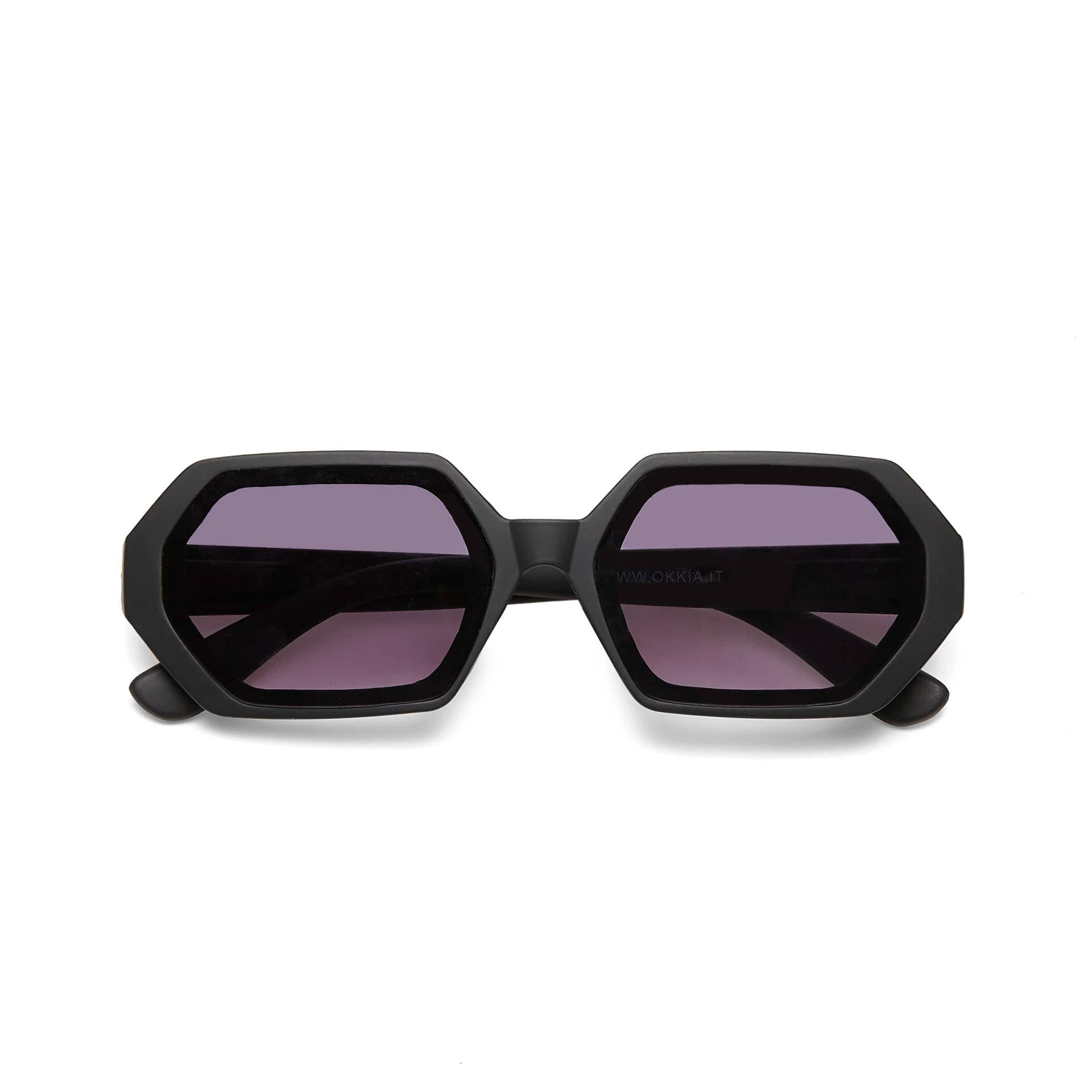 ANDREA is a pre-assembled hexagonal sunglasses with soft touch frame.
