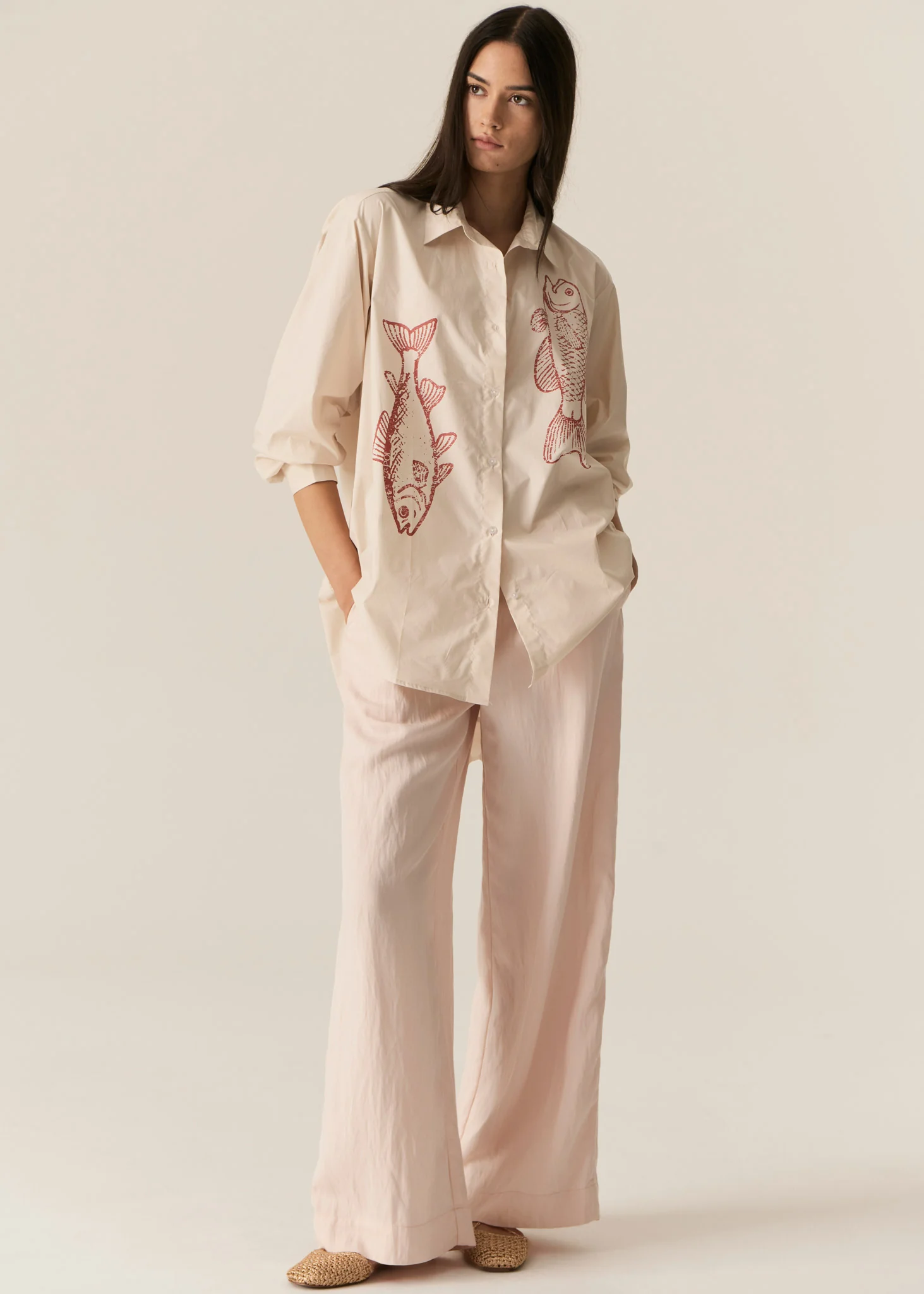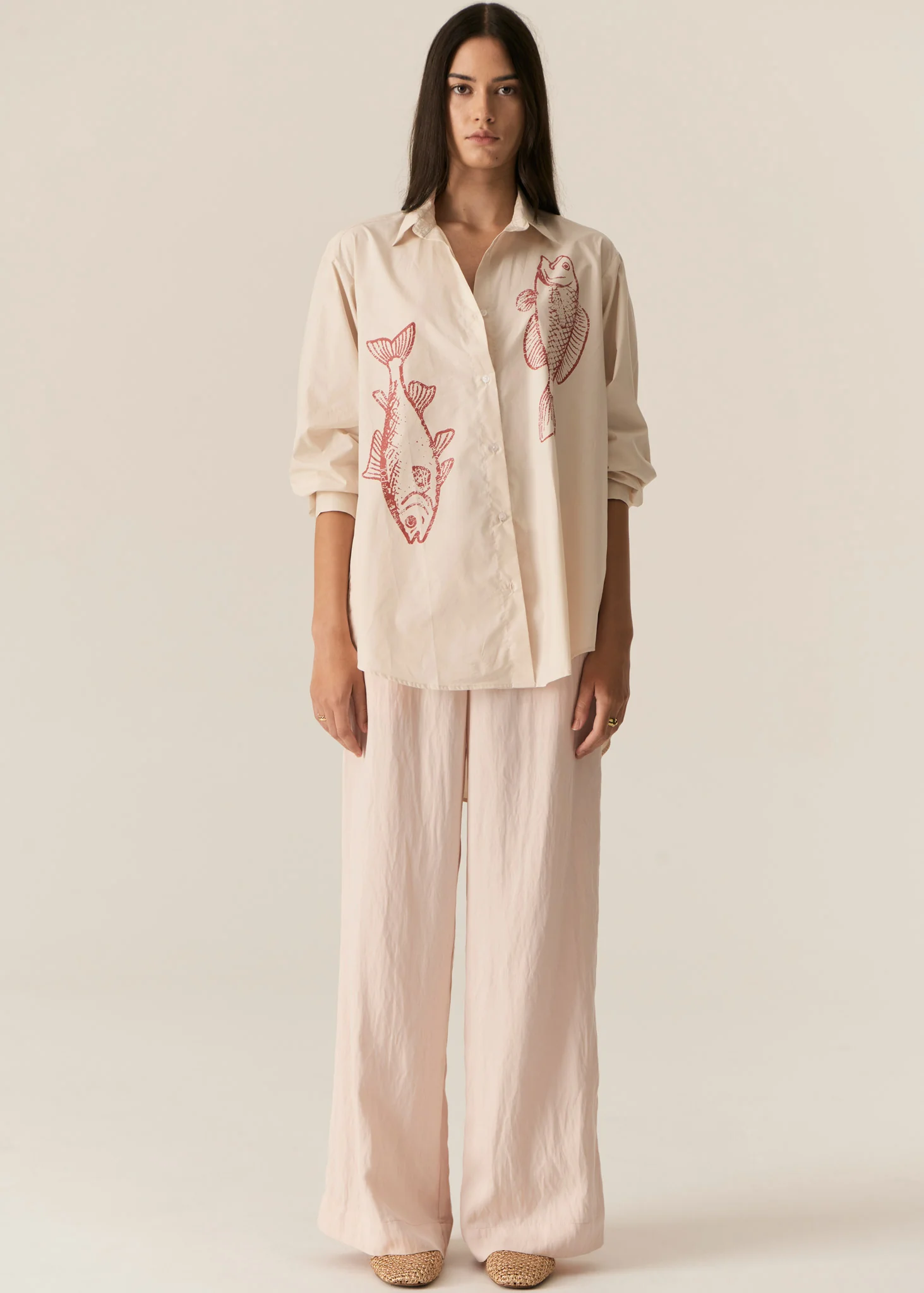 -In-house designed placement fish print on either side at the front.