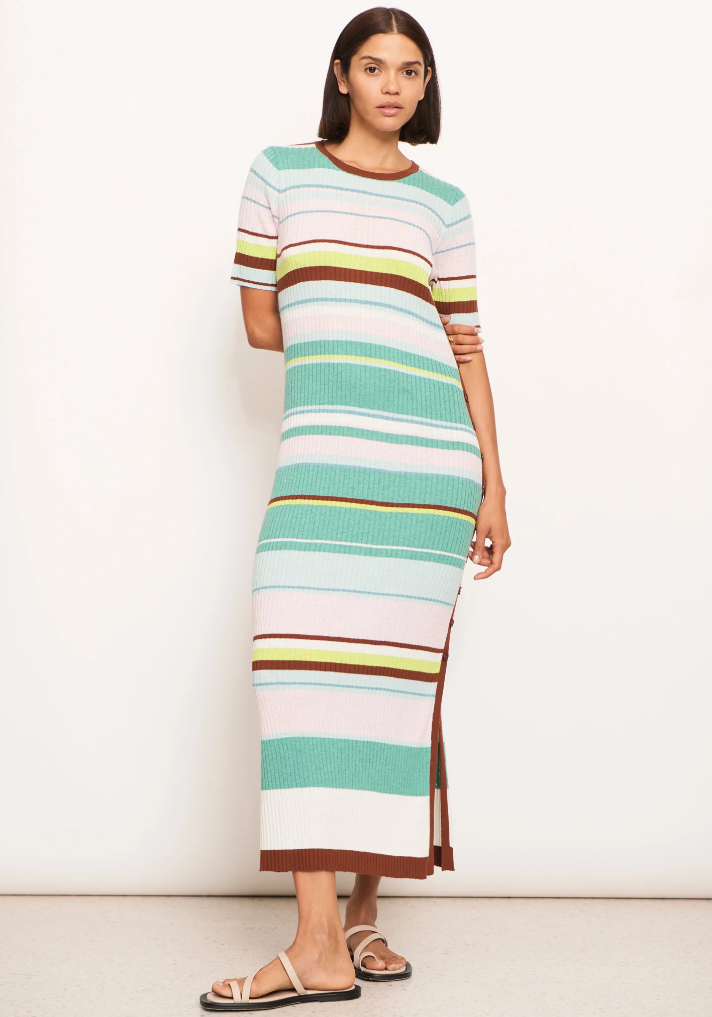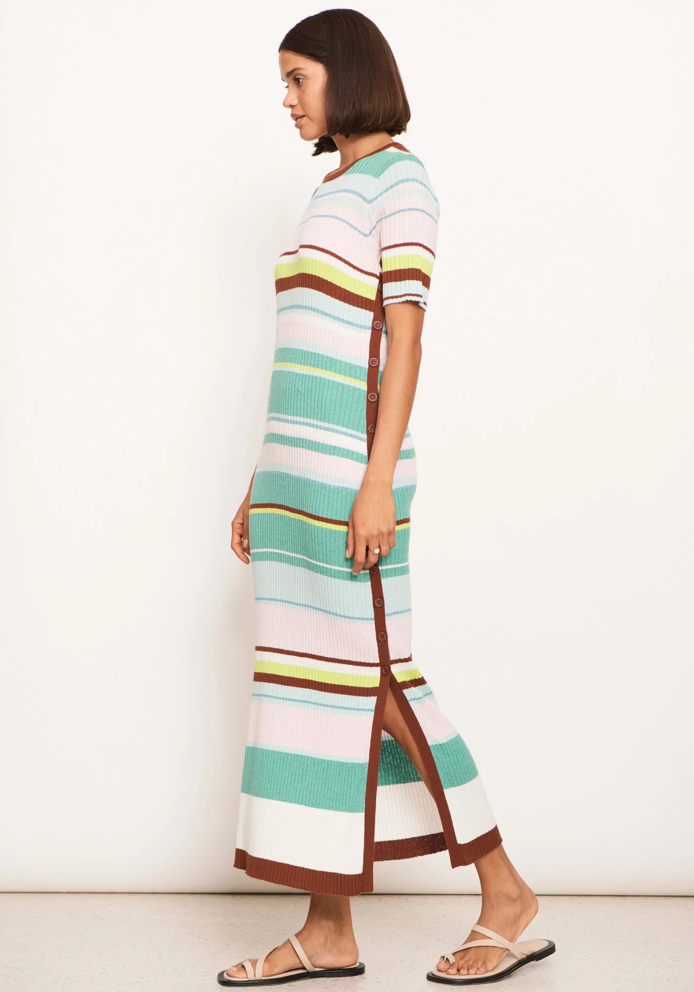 Multistripe knits are a favourite of ours for Spring, and we have two gorgeous new colourways and styles this season. The Lido Multi Knit Dress features tee sleeves, a longline silhouette and feature button detailing down one side.