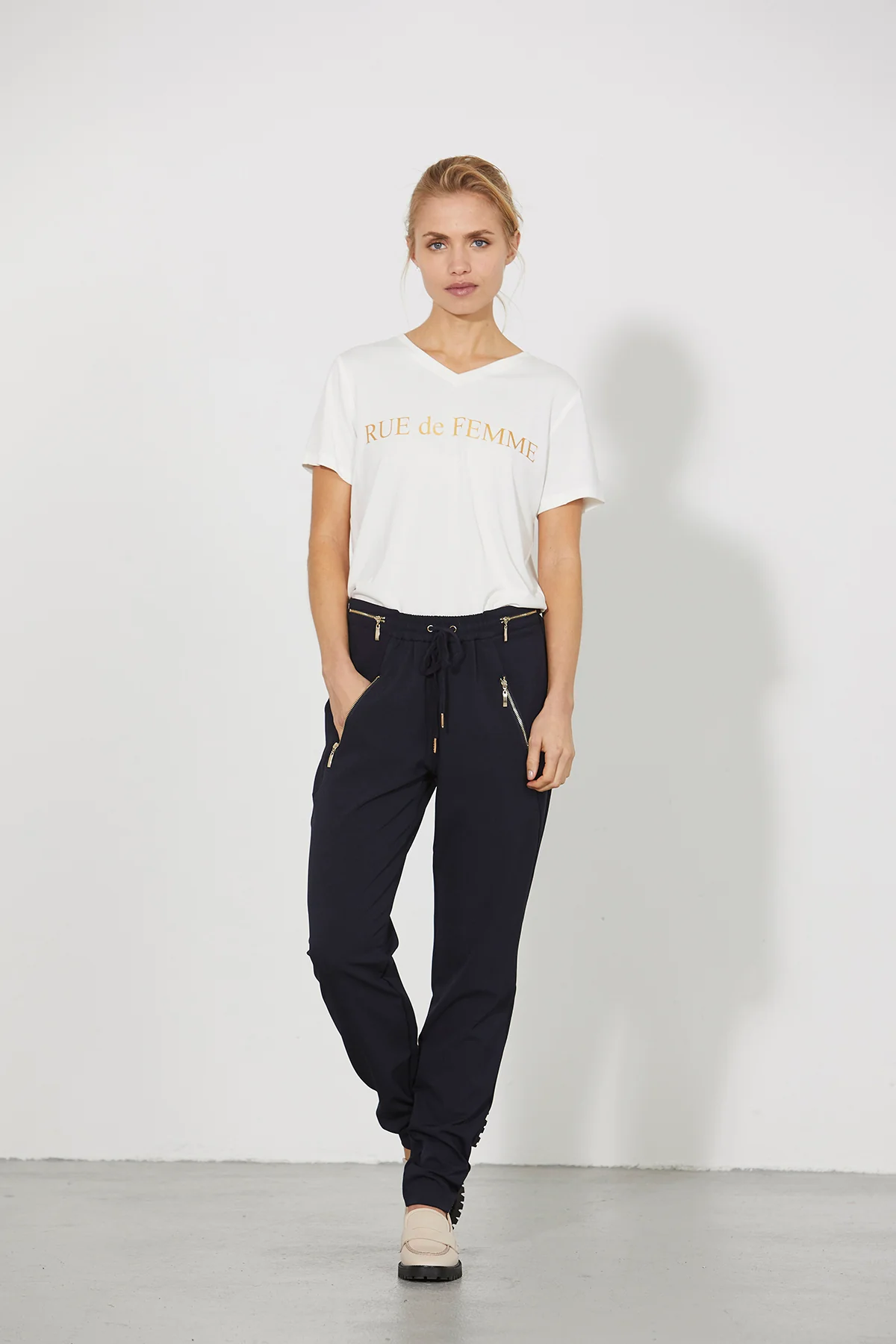 Casual pant from Rue de Femme which are incredibly comfortable with metal zipper detail at waist and front pockets