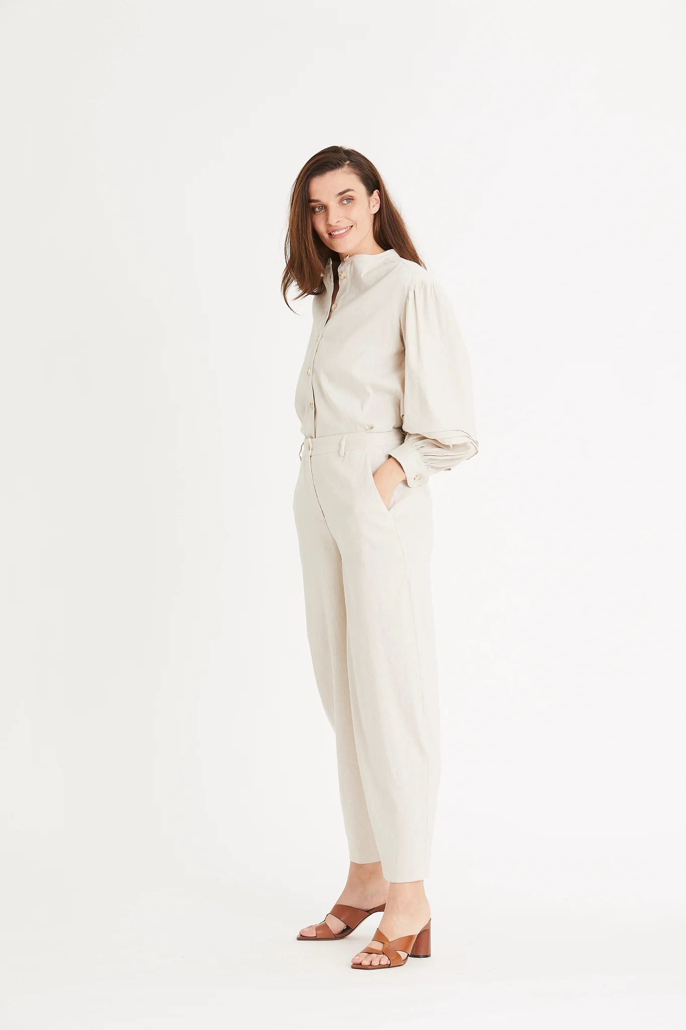 The Hosana trousers are trousers with balloon legs and a regular fit that add a trendy and modern touch to your wardrobe. Their ankle length makes them perfect for showing off your favorite sneakers or heels. The vanilla cream color makes them versatile and easy to style.