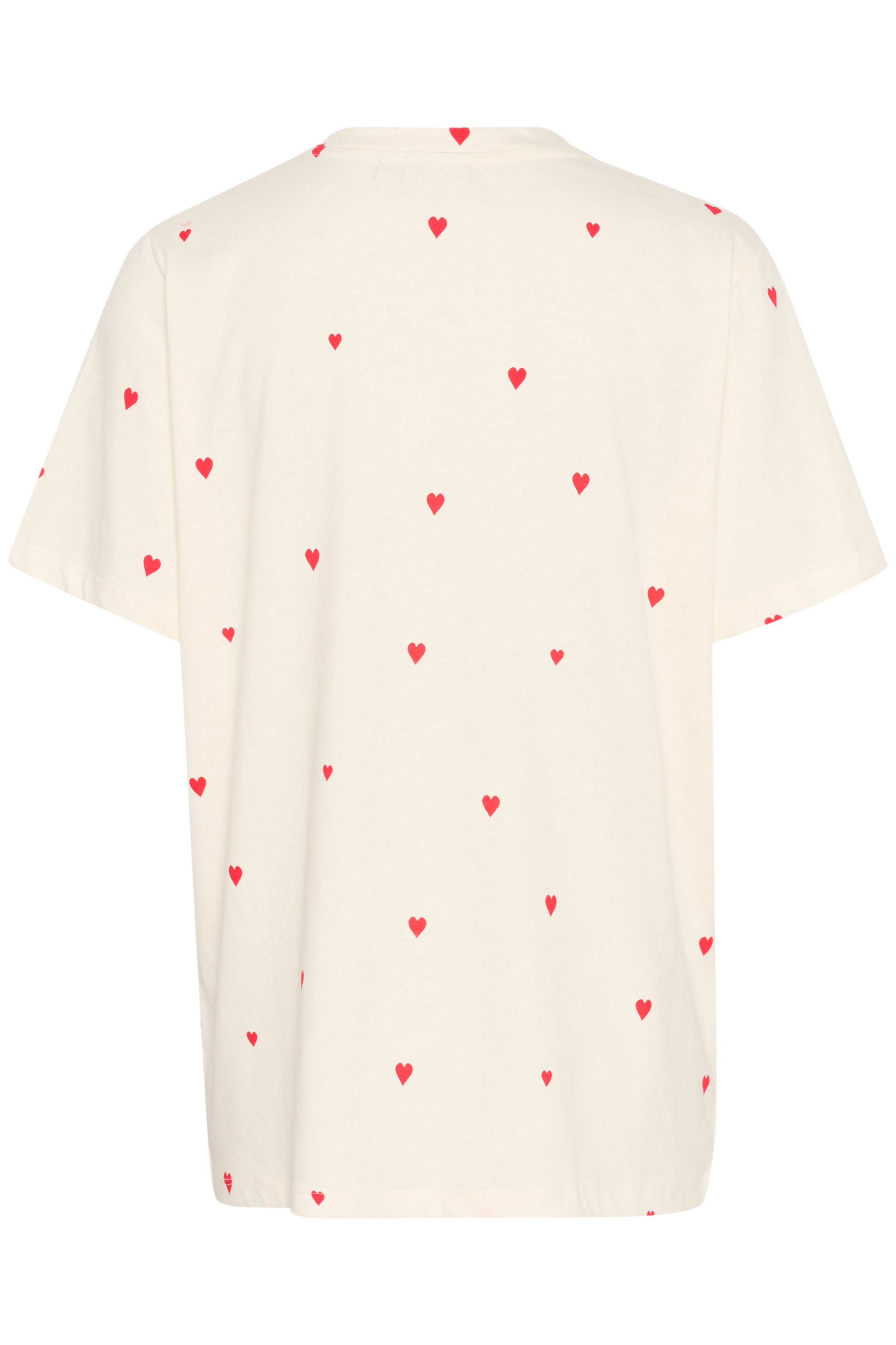 Cotton T-shirt with small red heart print. Relaxed fit with crew neck and short sleeves.