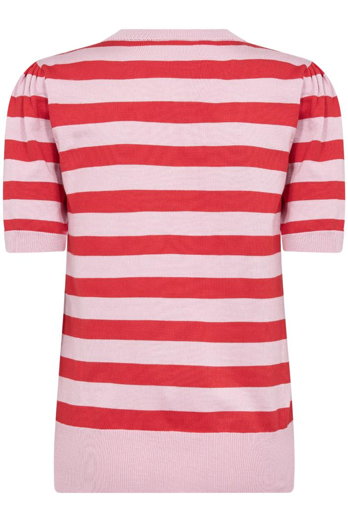 Striped knit in pink and red with short sleeves and a round neckline. Designed with subtle puff at shoulders and ribbed hem and cuffs. Fitted silhouette in a soft fine-gauge knit.