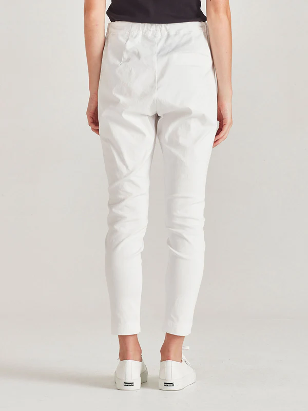 Our popular Emily Jogger has a relaxed fit, 7/8 leg and tapered ankle. The signature semi drop crotch, darted hip pockets and knee detail gives this little lady a modern vibe. Made in our original Torpedo cloth; gutsy, reliable, comfortable and flattering.