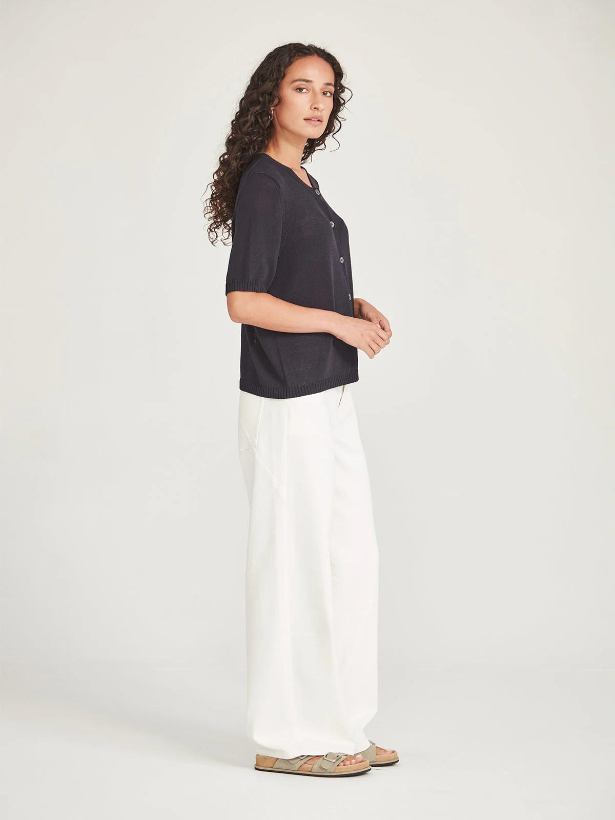 A new style to our Sills range, the Otto Cardigan is a button front t-shirt shape. It has been knitted in our eco-conscious Luna Yarn, in a range of SS25 colours which echo an ocean sunset.