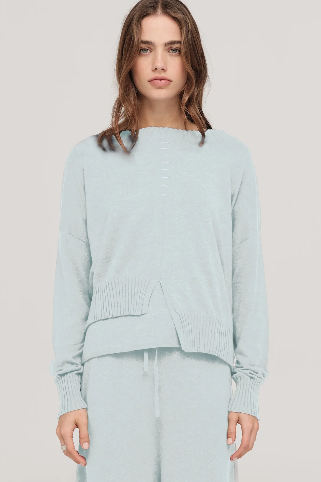 Modernise your casual wardrobe with the Fluctuate Sweater in a lush cashmere cotton blend. The uniqueness of the contrast detail at the centre front seam and asymmetrical hem adds a taylor touch. A thick ribbed hem slightly tapers the boxier shape through the waist creating definition. The Fluctuate Sweater is an easy shape that will assimilate well with your pre-existing taylor pieces and other Recline pieces such as the Contentment Pant and Veneer Tunic.