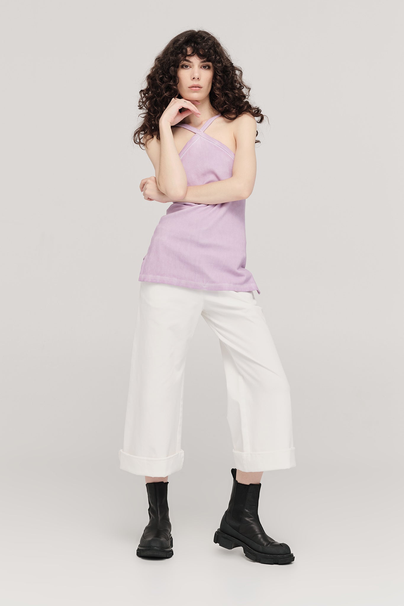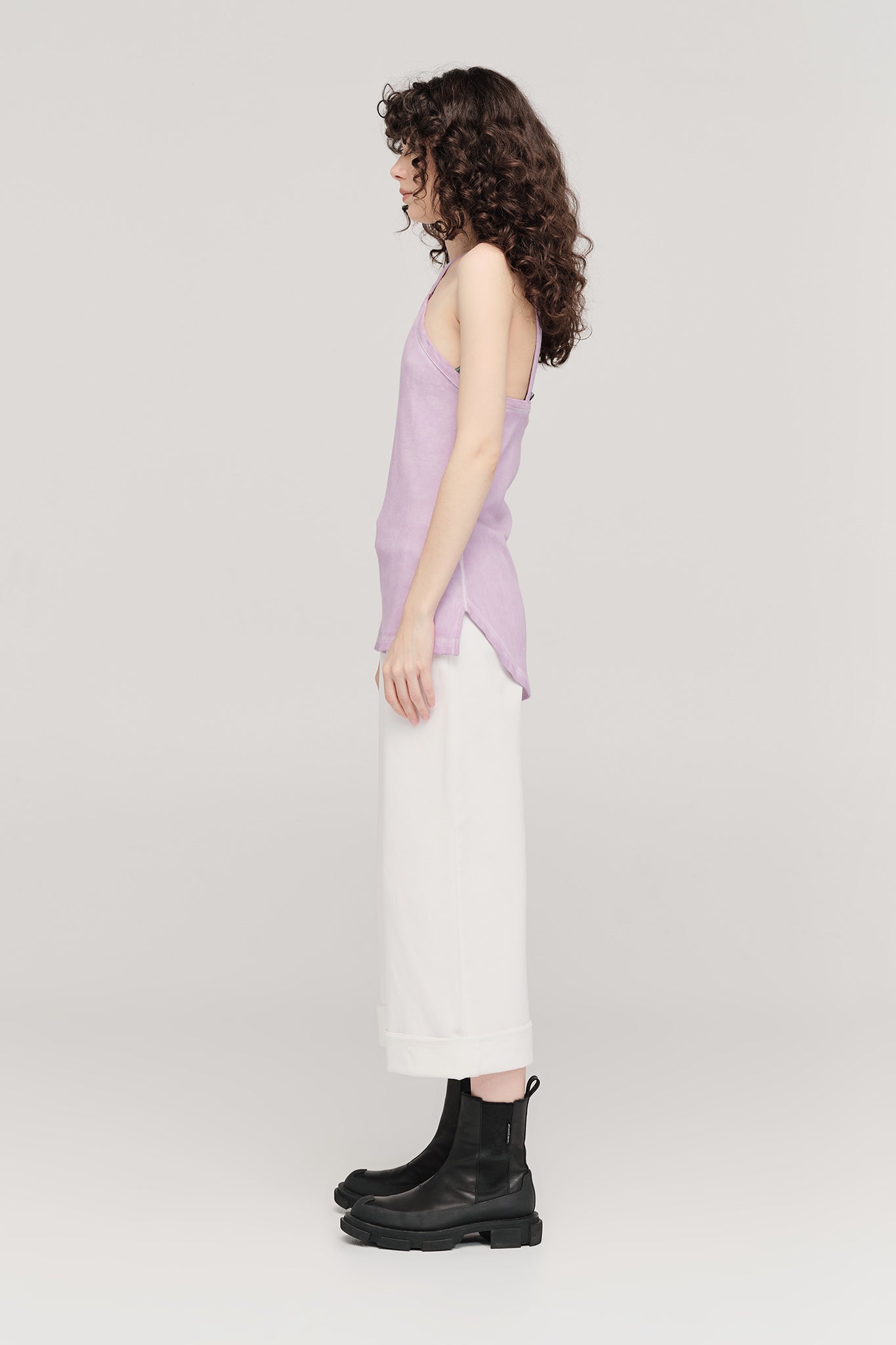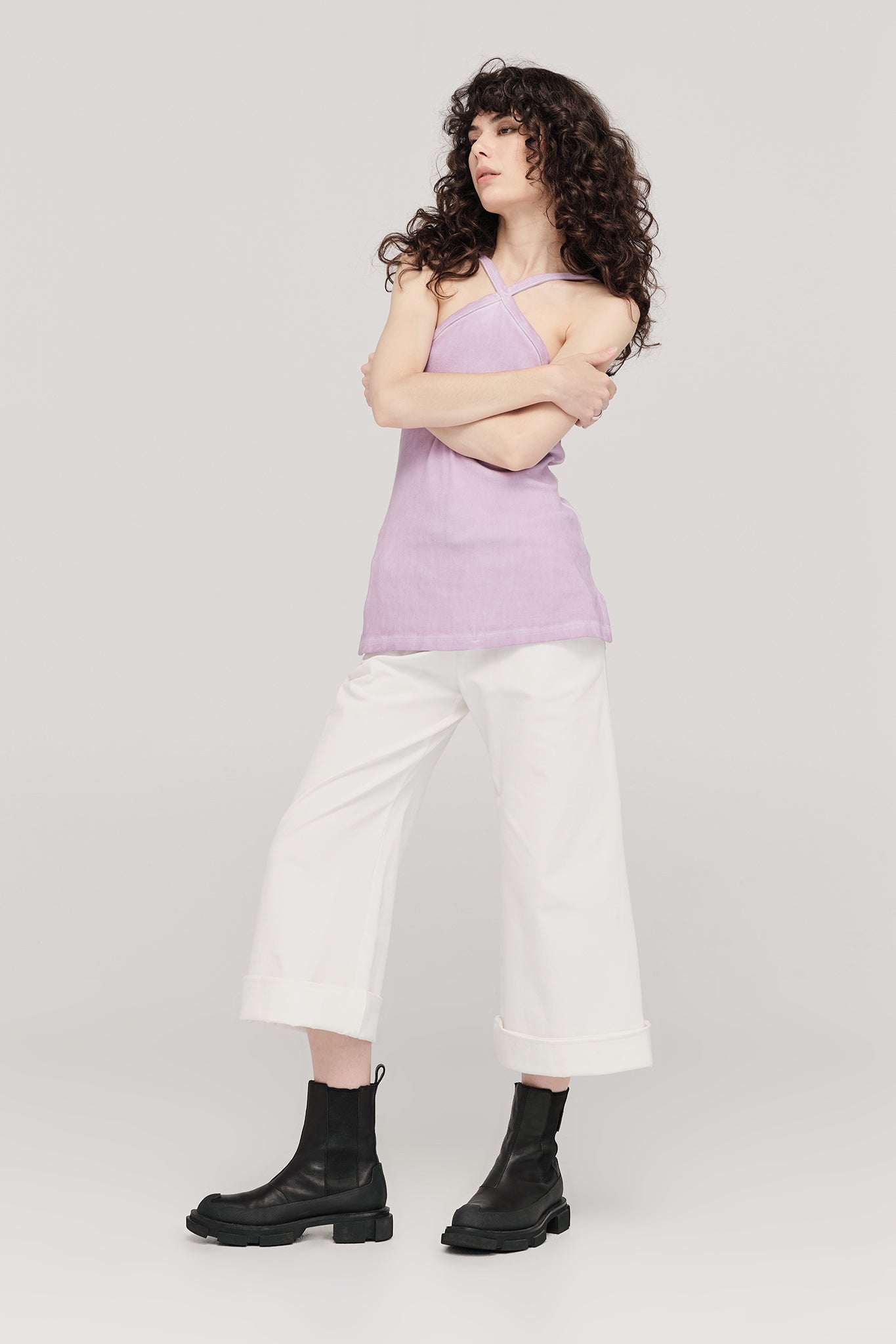 Love the Extension Tank? Then the Straight Extended Tank is another piece that is a must have as an essential for the wardrobe. Created in the soft ribbing allowing this to be worn as under item or simply styled alone with the Proceed Pants and sneakers or sandals. The cross over front and straight back can also be worn reversed for a different neckline detail.