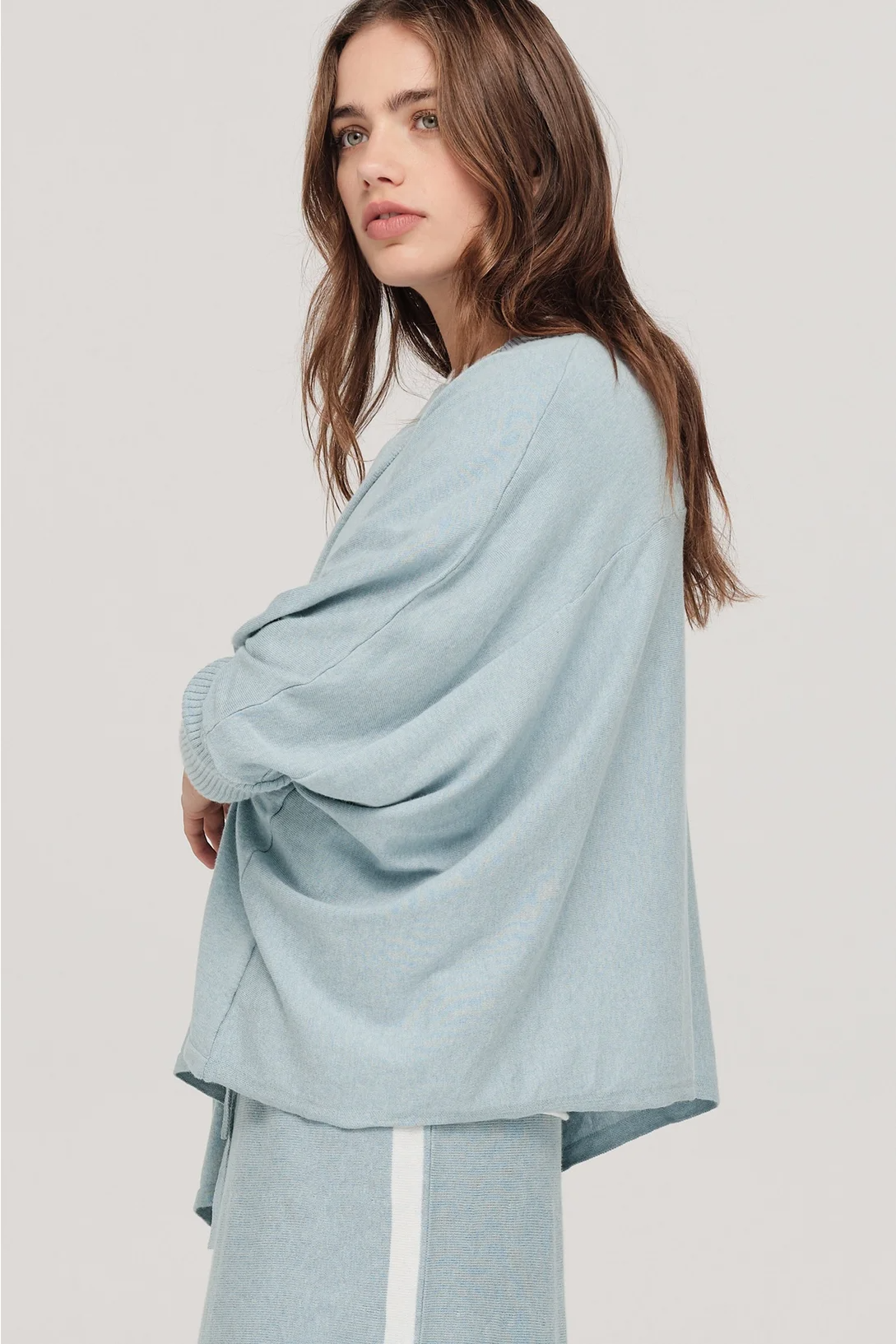 A knitwear staple, the Varigation Sweater shape is a style that you will keep reaching for this season. This one-size rectangular piece brings comfort and style to your everyday life. V crossover at the front allows versatility, and the elongated ribbed cuff creates flattering contrast amongst the volumes.