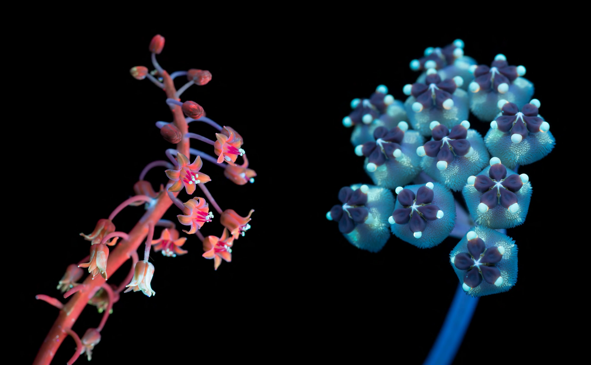 Photographer Craig P. Burrows say, Bees see in the ultraviolet spectrum. Their world is completely foreign to the human eye, full of electric, alien colours and luminous, vibrant light that we can only imagine. Shooting UVIVF doesnt show us exactly how bees see the world, but it does enable us to better contemplate pollinator vision and understand these vital species and their importance to the future of life on earth.