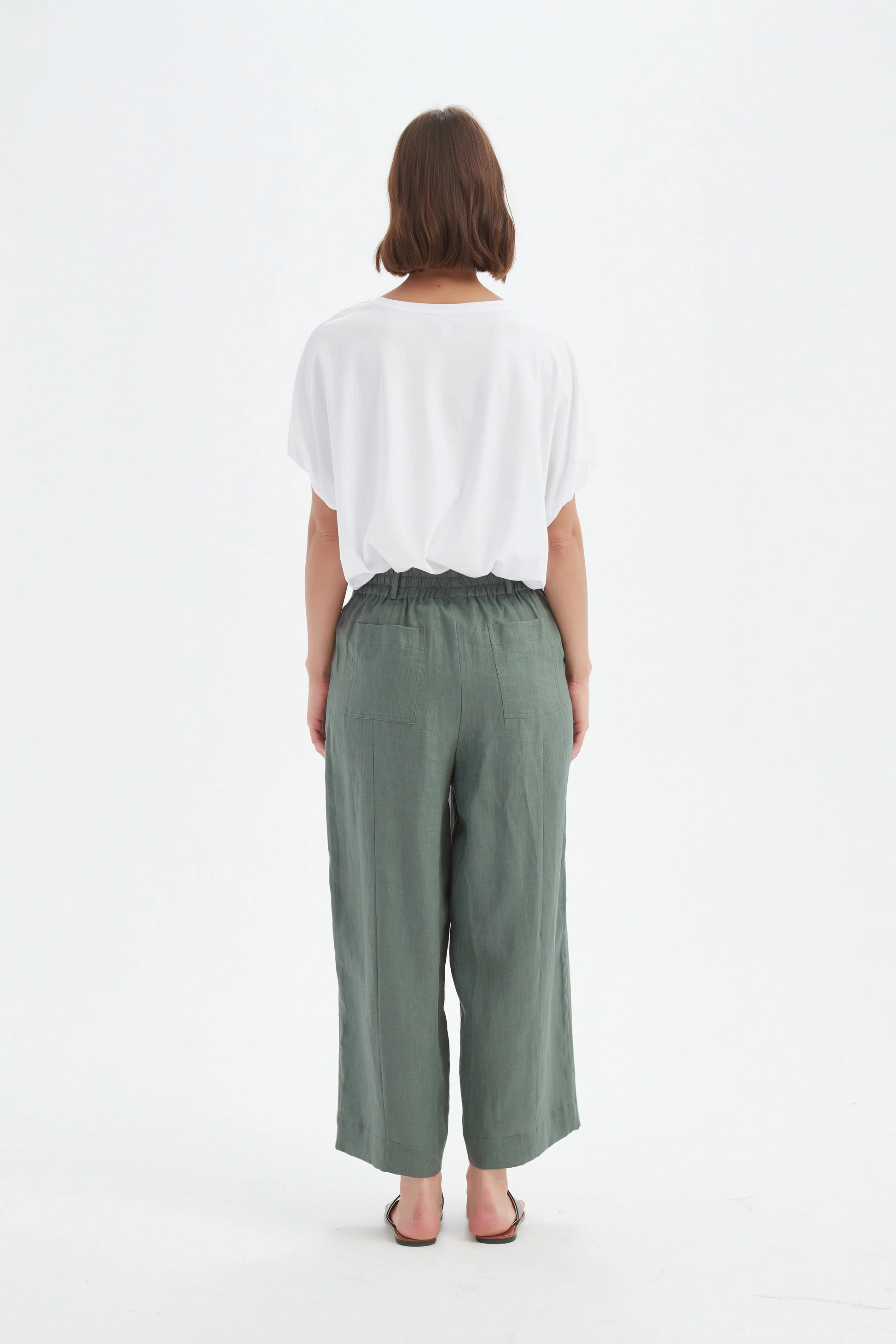 Relaxed yet refined, the Patch Pocket Easy Pant brings effortless polish to your everyday dressing. Crafted from 100% French Linen, this wide-leg style features practical patch pockets, subtle seam detailing, and a flattering high-rise fit. Designed for comfort with an elastic back waistband, belt loops, and a button-and-zip fly closure, this versatile piece pairs beautifully with simple linen tops for an elevated off-duty look.