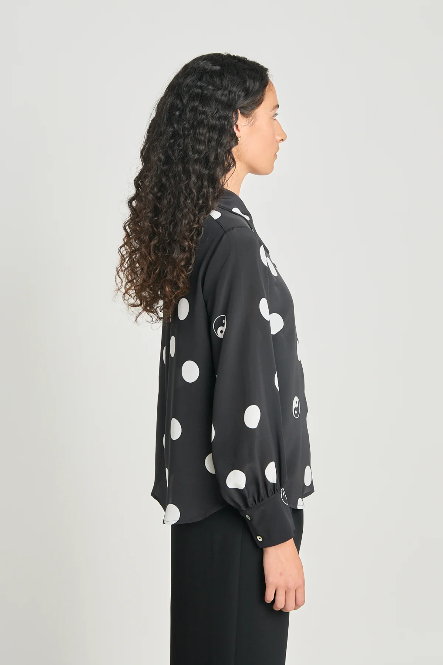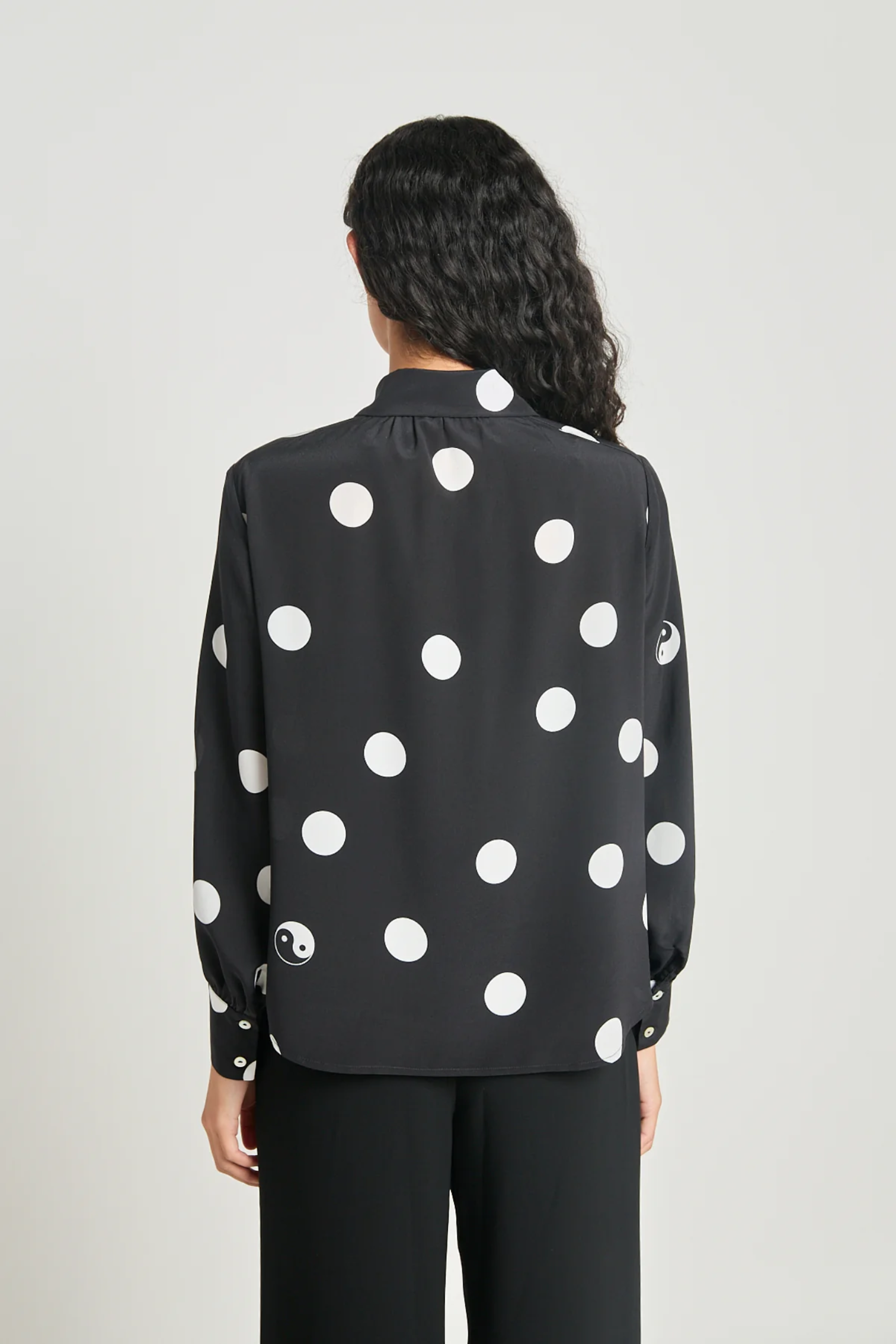Twenty-Seven Names Existentialist Shirt - Black Polka Dot