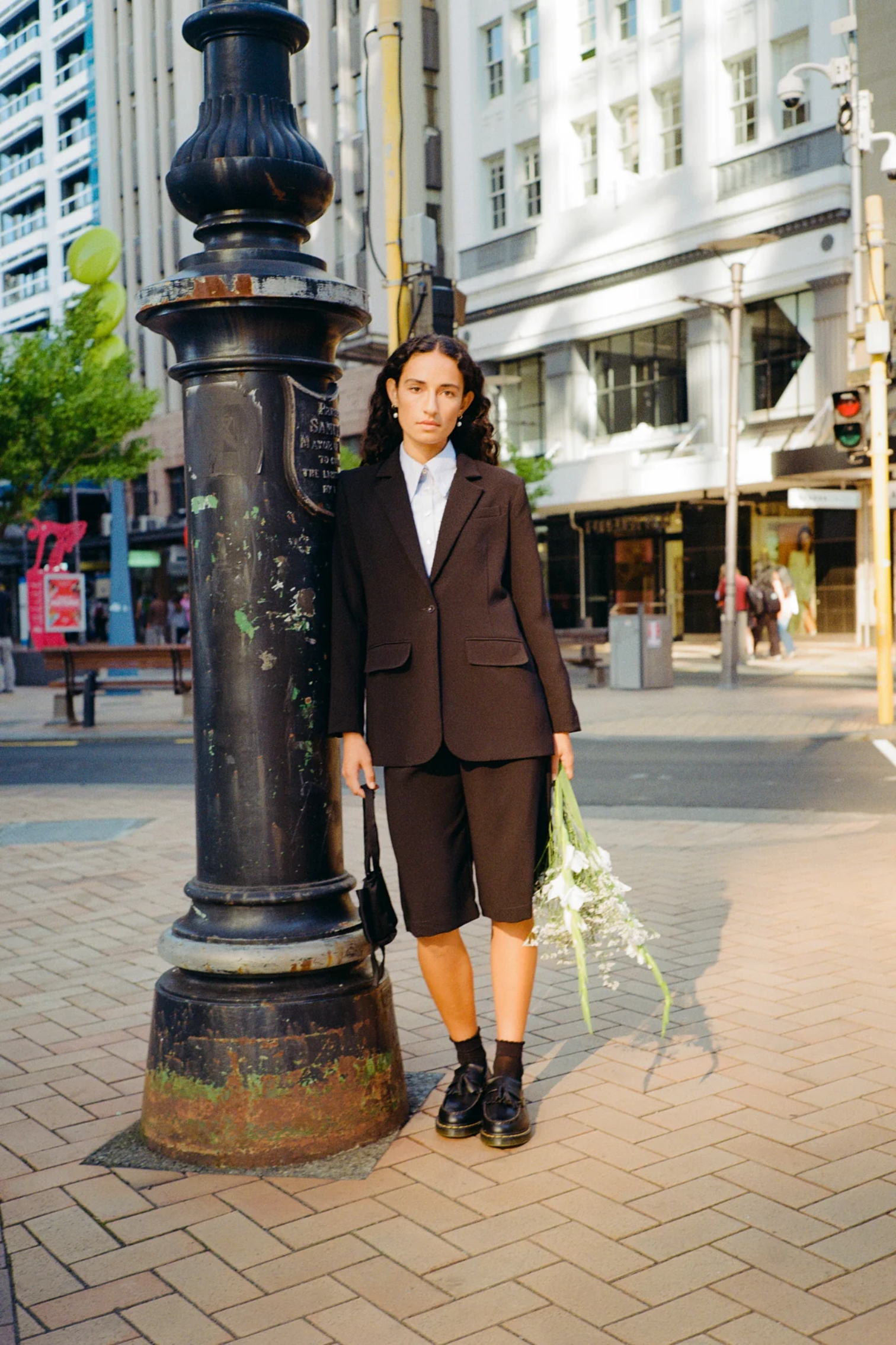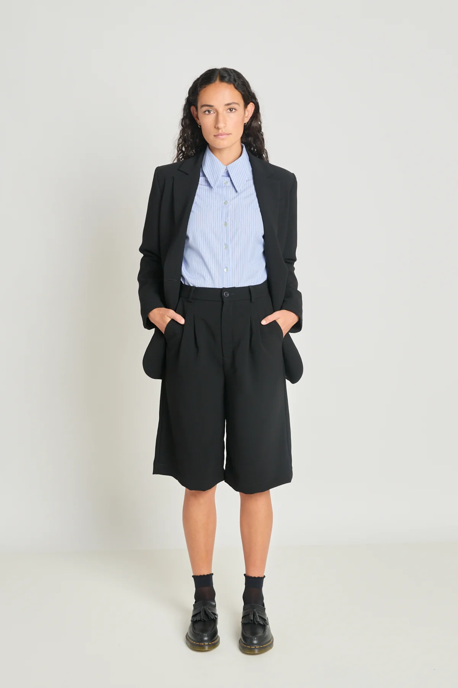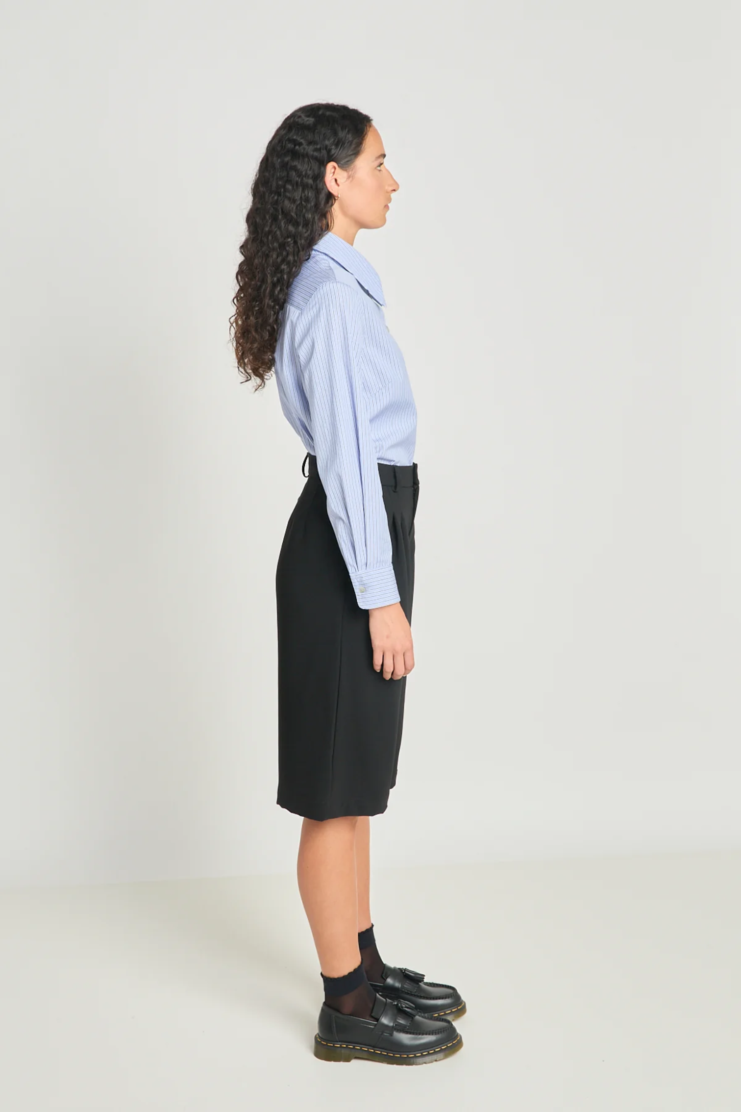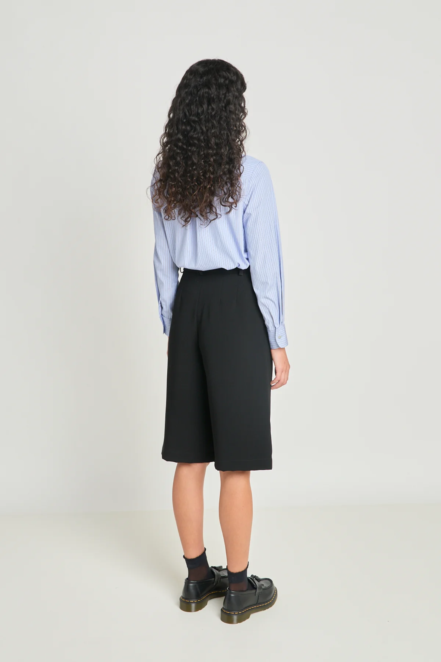 We've got a good feeling about these. The Seventh sense shorts are high-waisted short trousers with a set waist, loose-leg, pockets and belt loops. Cut in our favourite soft Japanese triacetate blend with beautiful drape and handfeel.