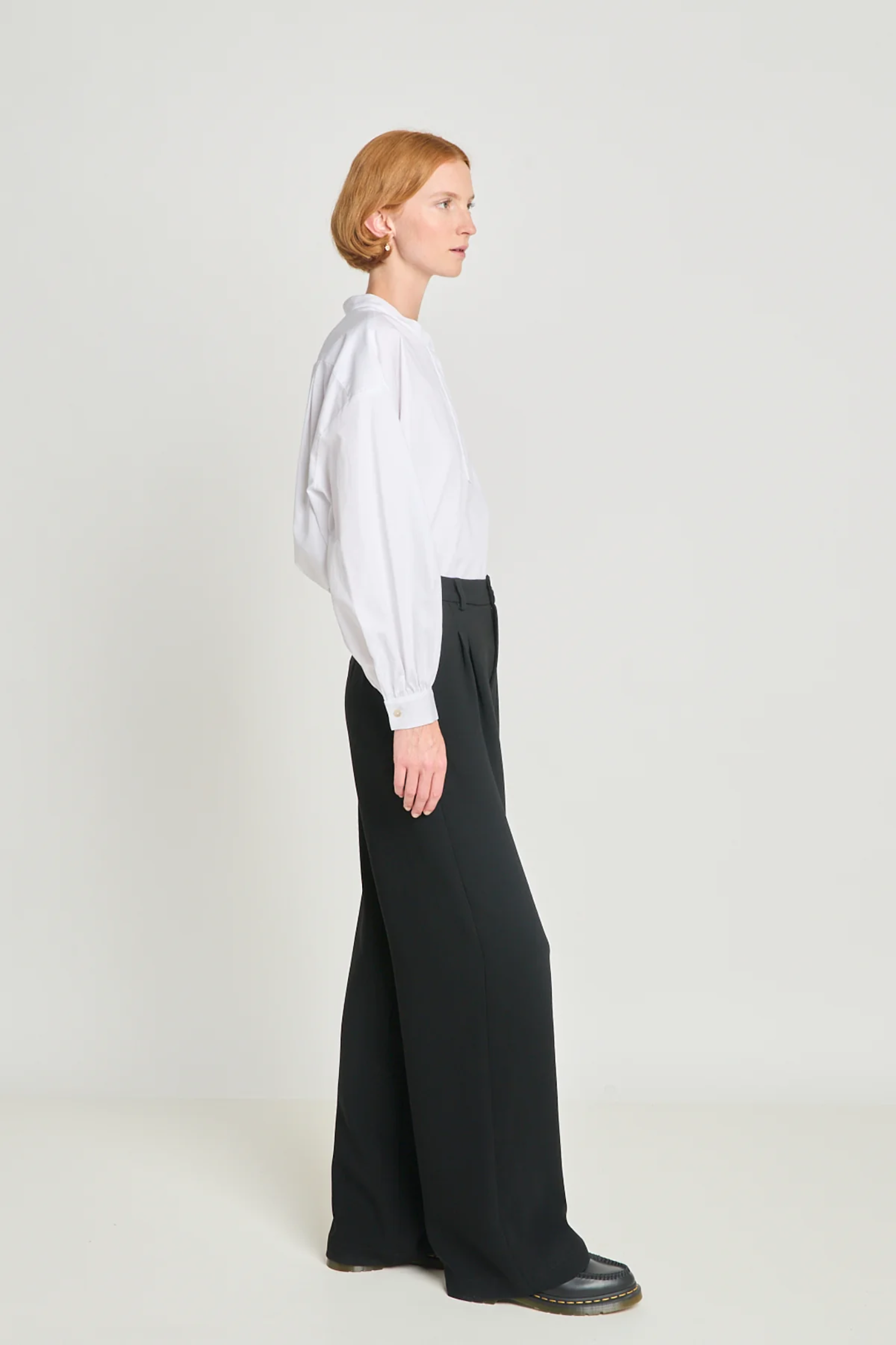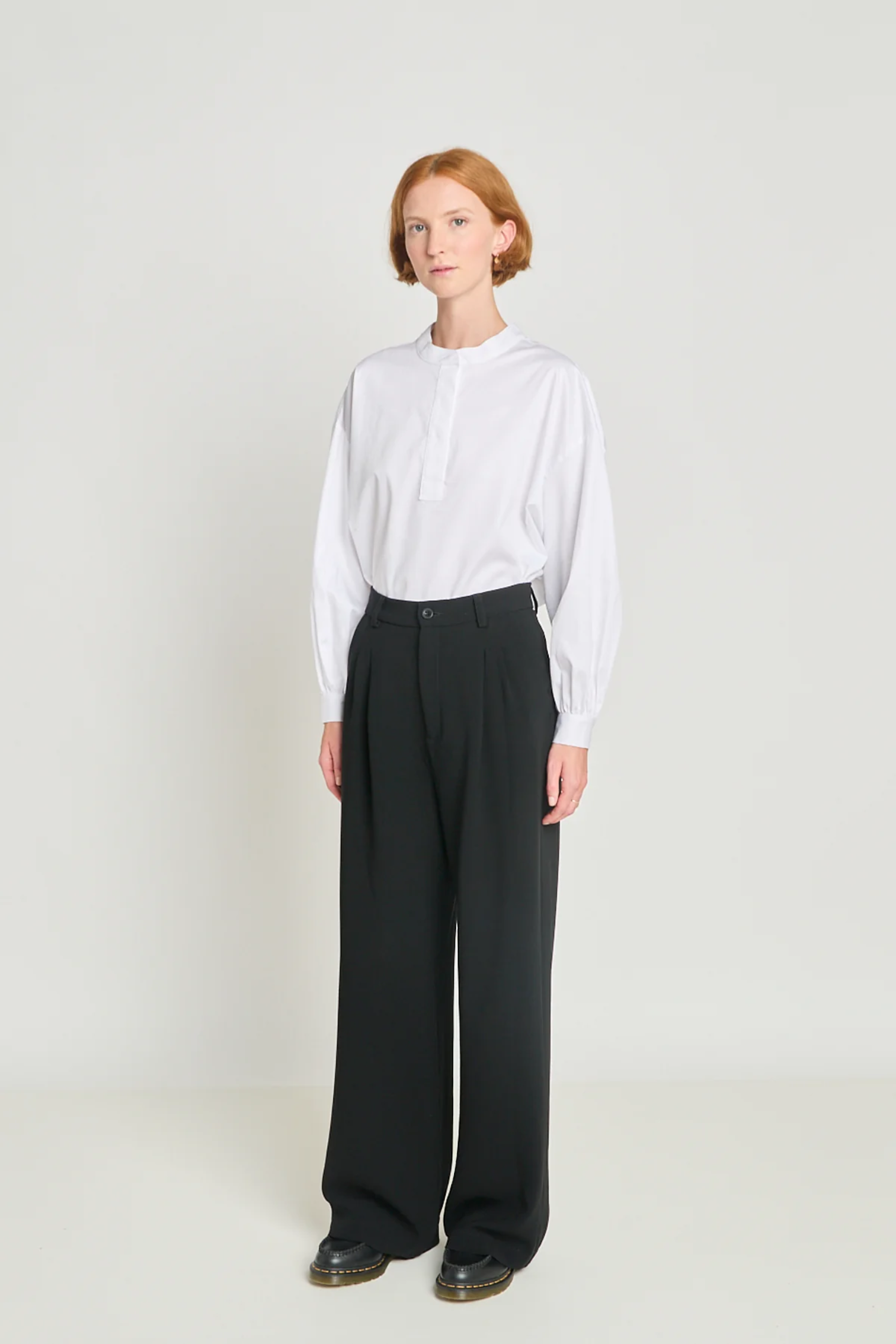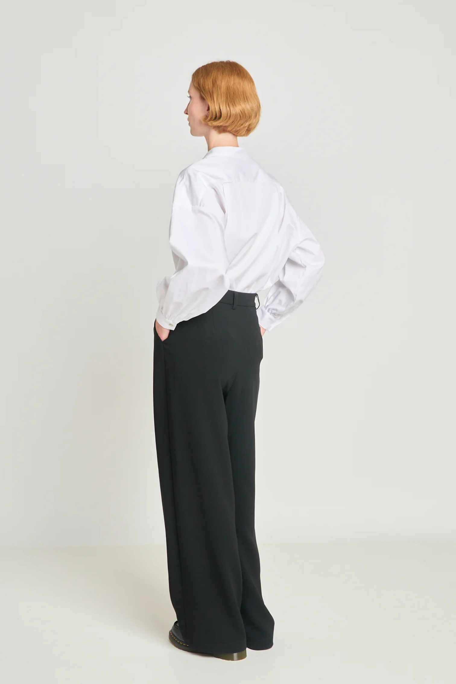 High-waisted pants with set waist, loose-leg, pockets and belt loops. Cut in a soft Japanese triacetate blend with beautiful drape and handfeel.