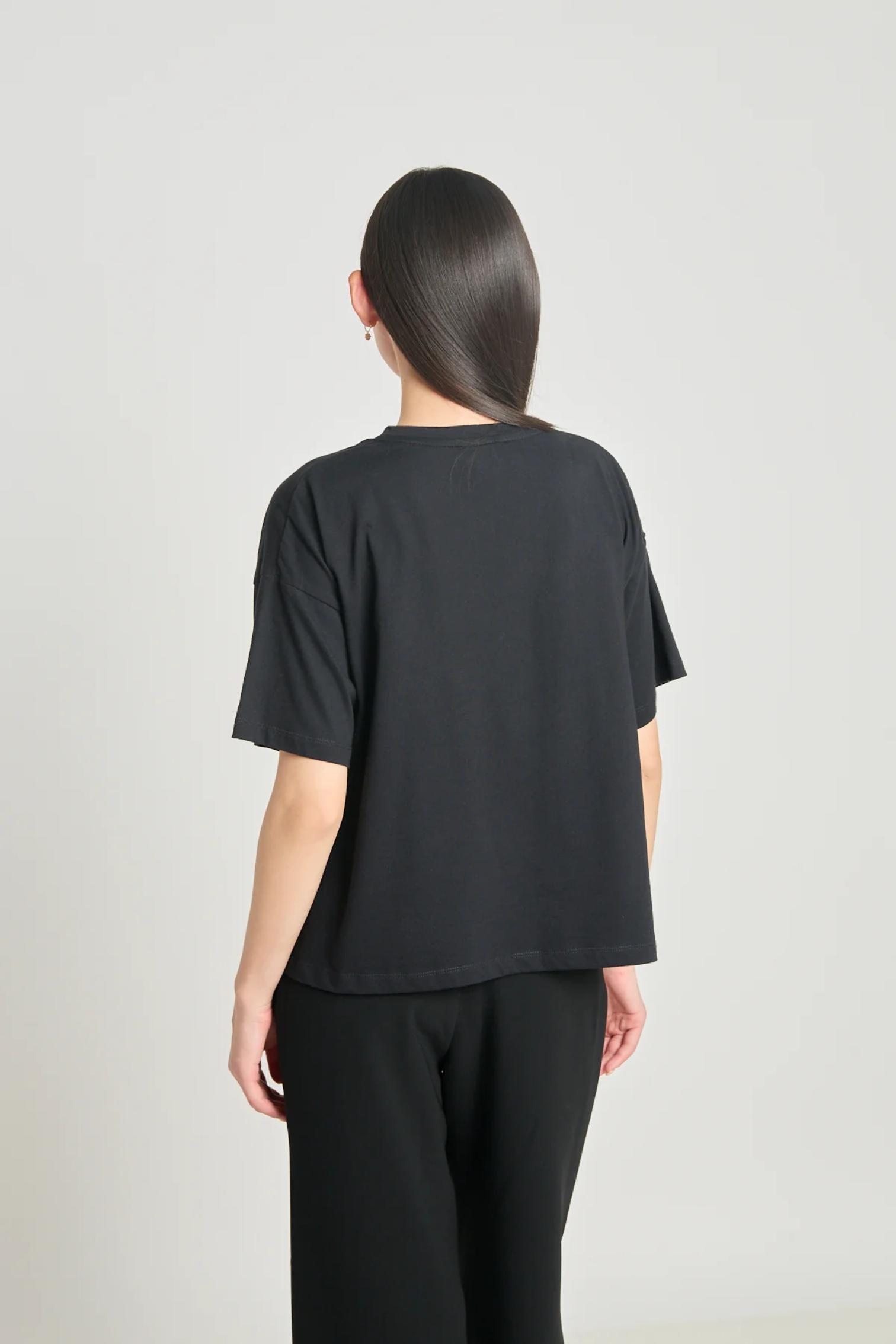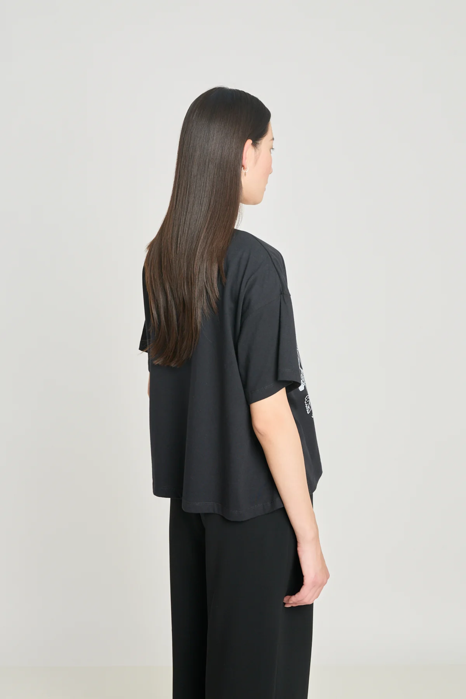 Our classic short-sleeved tee with cropped, boxy shape, flared back, and dropped sleeve. Made in Wellington and printed in Levin.
